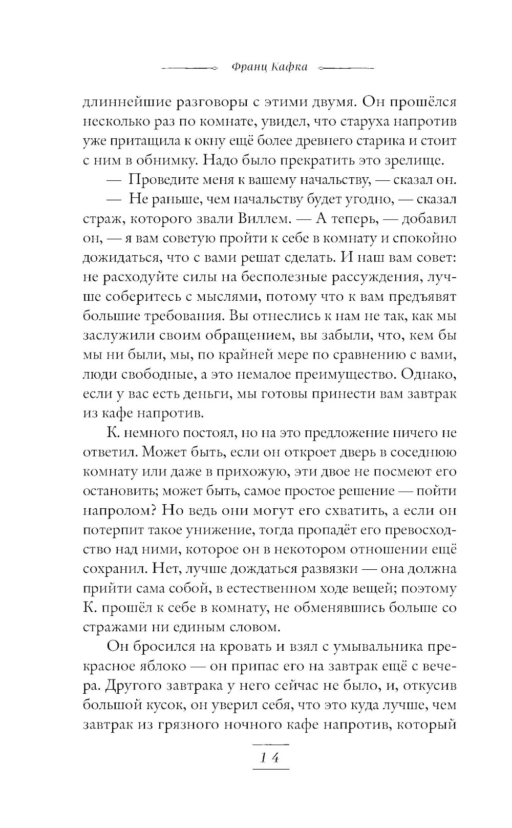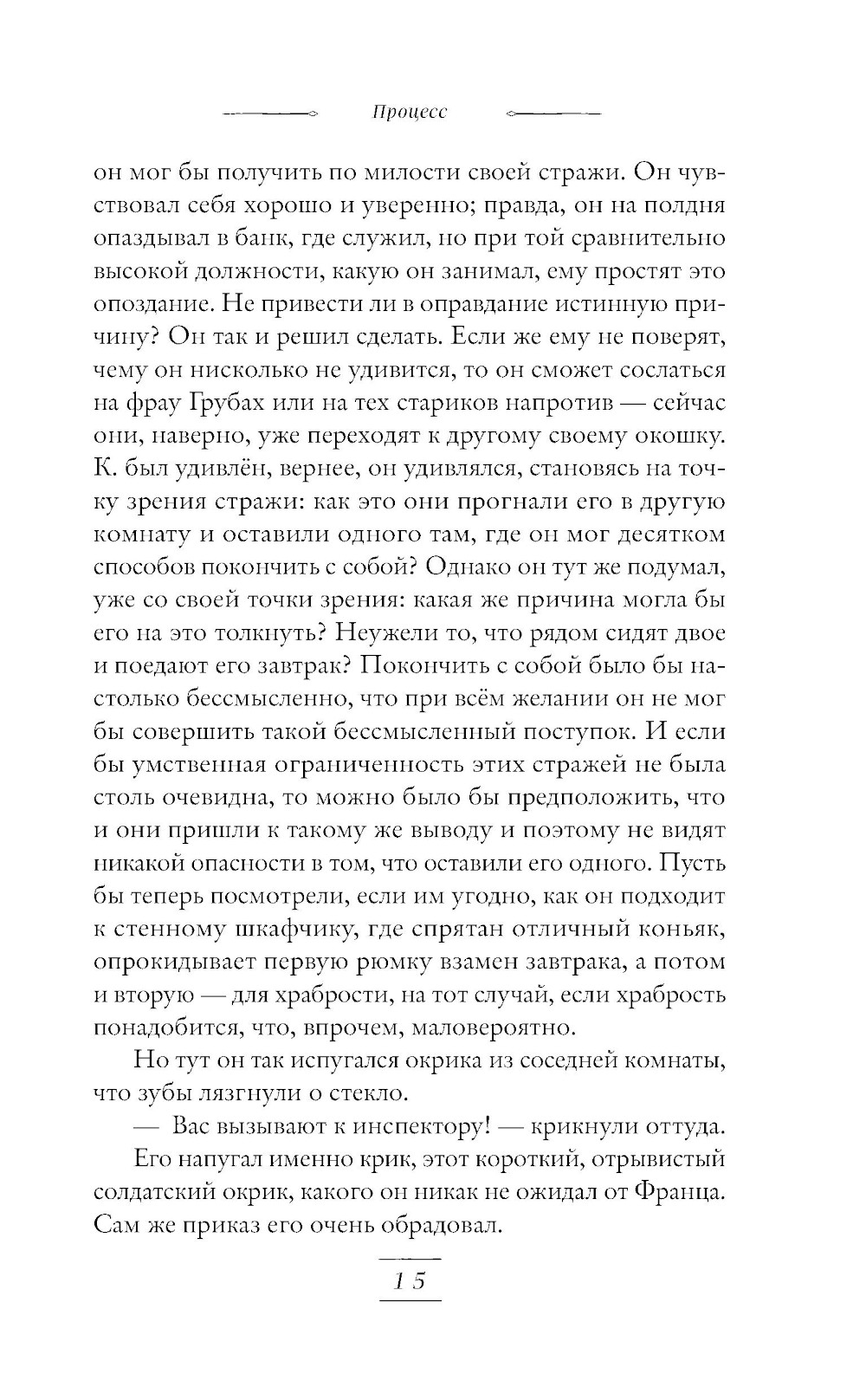 Роман Франца Кафки «Процесс», согласно завещанию автора, должен был быть сожжён после смерти писателя. К счастью, этого не произошло. В итоге «Процесс» не только стал первой книгой, изданной после смерти Ф. Кафки, но и вошёл во всемирную историю литературы. А поклонники творчества писателя не устают находить и расшифровывать тайные смыслы, скрытые в текстах произведений. Роман «Процесс» и шесть коротких новелл, вошедшие в эту книгу, приглашают читателей в странный, непостижимый мир готического абсурда - может быть, ради новых открытий?| Издательство | Эксмо |