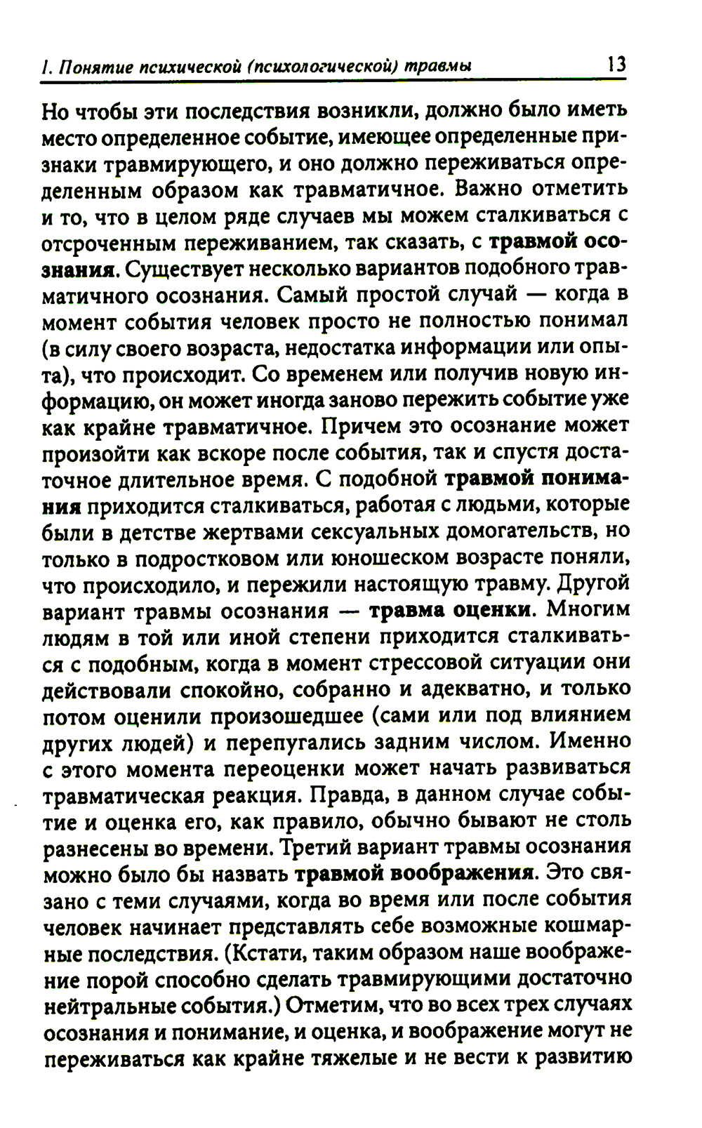 Книга посвящена исследованию феномена психической (психологической) травмы, представленной как единый процесс переживания травмирующего события. Автор считает, что психическая травма является нормальным элементом психологического развития человека. Рассматриваются закономерности и механизмы протекания этого процесса, а также методы оказания психологической помощи на разных его этапах. Книга предназначена для психологов, психотерапевтов и всех тех, кто работает с людьми, перенесшими психическую травму.| Издательство | Смысл |