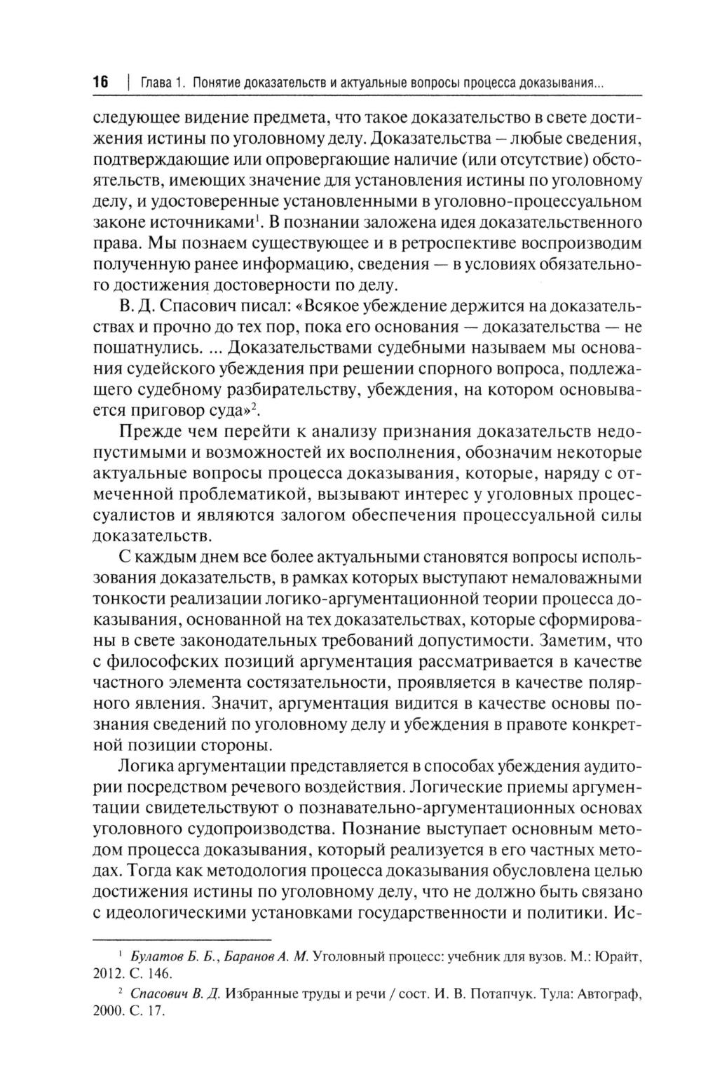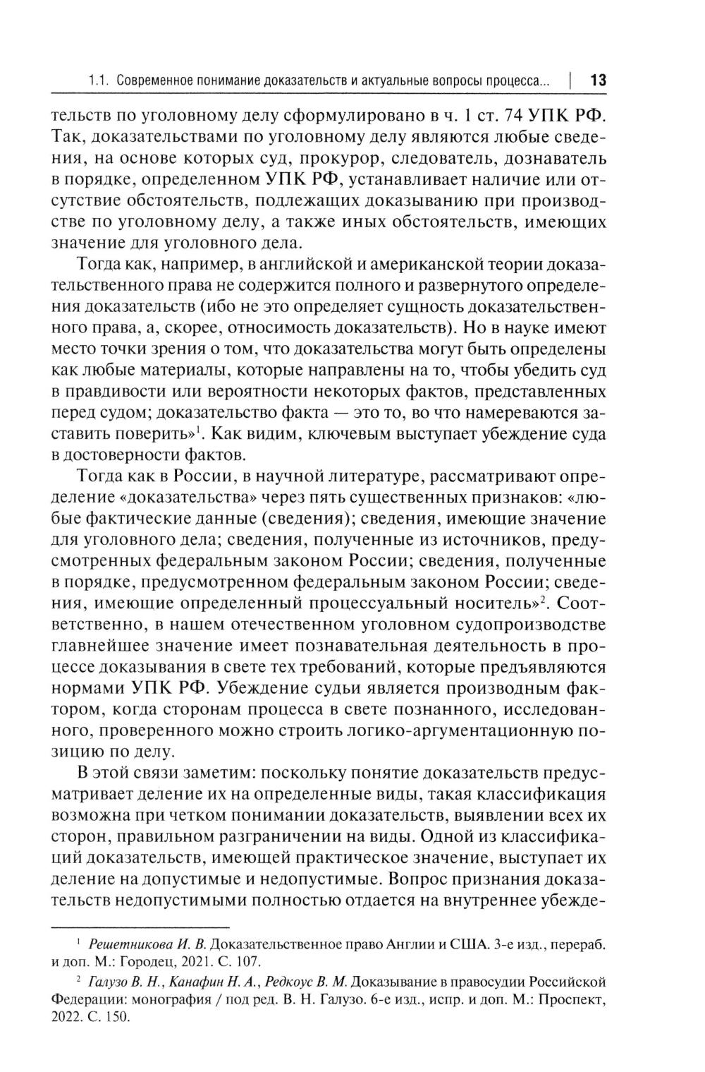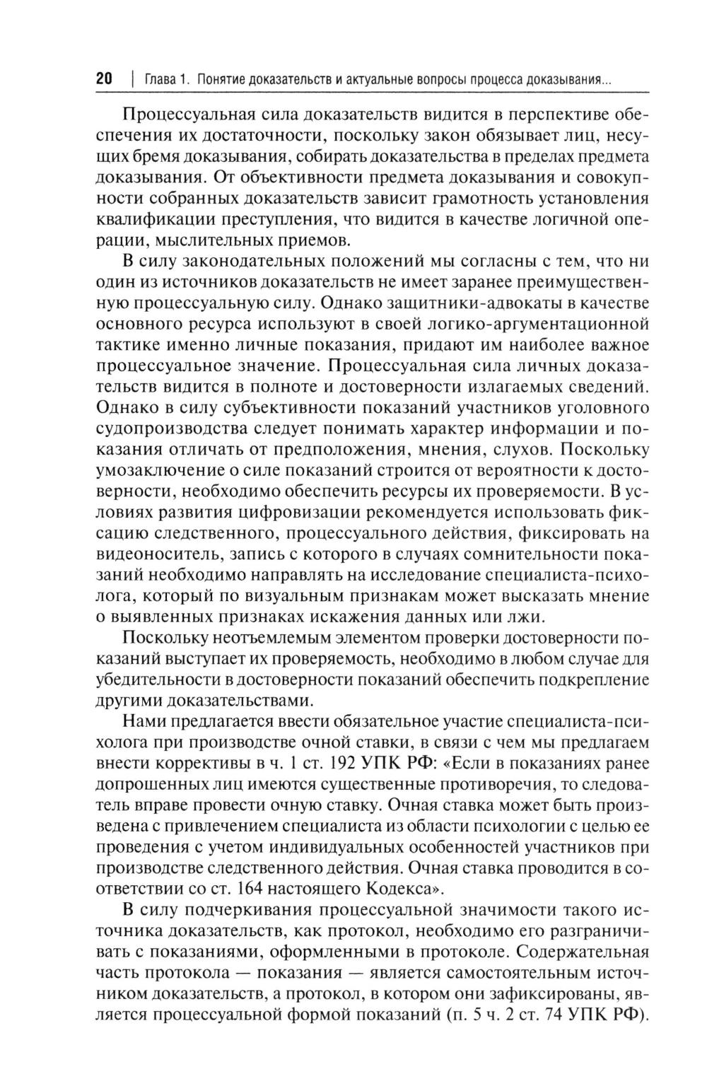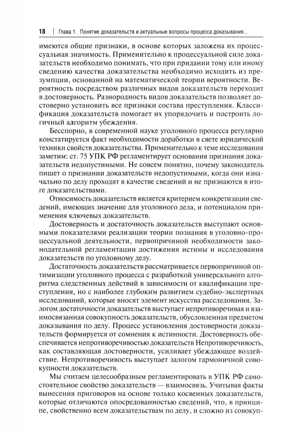В настоящем исследовании представлено понятие процессуальной силы доказательств, обосновано значение ключевых доказательств по уголовному делу. В свете предъявляемых уголовно-процессуальным законодательством России требований к свойствам доказательств автор раскрывает сущность их допустимости и недопустимости, специфику восполнения доказательств, признанных недопустимыми. Изложены воззрения о необходимости признания в качестве доказательств сведений, полученных оперативно-разыскными средствами, обосновано совершенствование и расширение способов участия в уголовном процессе специалиста. Законодательство приведено по состоянию на 15 апреля 2025 г. Издание предназначено для всех интересующихся проблематикой процесса доказывания в уголовном судопроизводстве.| Издательство | Проспект |