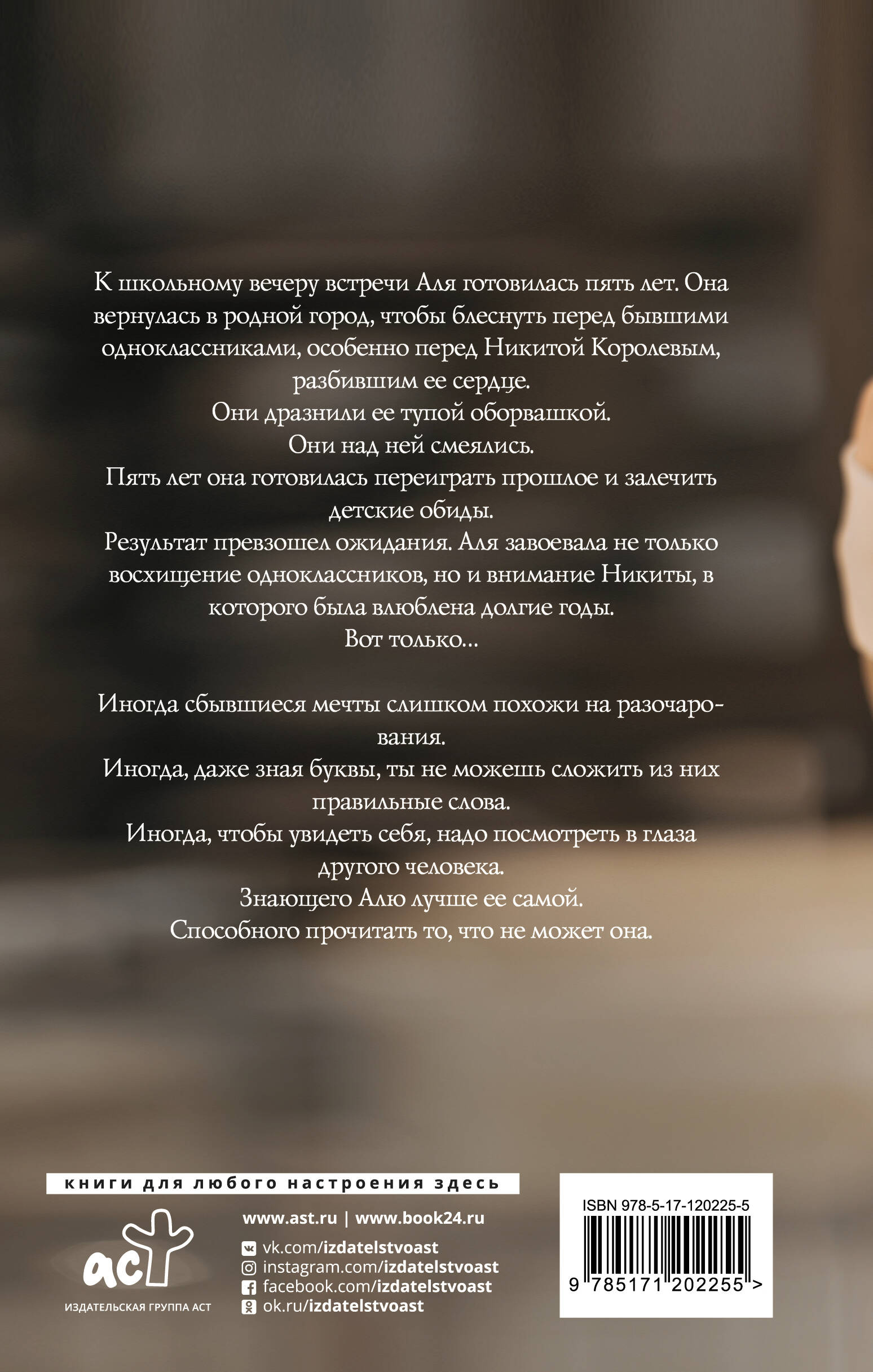К школьному вечеру встречи Аля готовилась пять лет. Она вернулась в родной город, чтобы блеснуть перед бывшими одноклассниками, особенно перед Никитой Королевым, разбившим ее сердце. Они дразнили ее тупой оборвашкой. Они над ней смеялись. Пять лет она готовилась переиграть прошлое и залечить детские обиды. Результат превзошел ожидания. Аля завоевала не только восхищение одноклассников, но и внимание Никиты, в которого была влюблена долгие годы. Вот только… Иногда сбывшиеся мечты слишком похожи на разочарования. Иногда, даже зная буквы, ты не можешь сложить из них правильные слова. Иногда, чтобы увидеть себя, надо посмотреть в глаза другого человека. Знающего Алю лучше ее самой. Способного прочитать то, что не может она.| Издательство | Издательство "АСТ" |