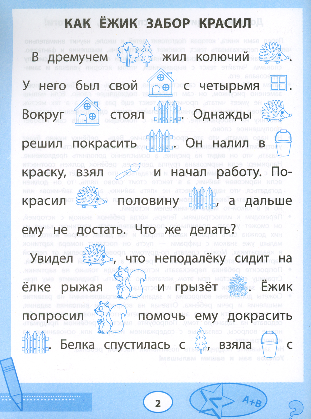 Для вас и ваших замечательных малышей мы выпустили книгу, которая подготовит детей к школе, научит внимательно читать и пересказывать текст, поможет развить речь, мышление и фантазию. Некоторые слова в рассказах заменены рисунками, и ребёнок должен сам подобрать подходящее слово. А затем, ответив на вопросы, ребёнок сможет пересказать прочитанный текст по картинкам.