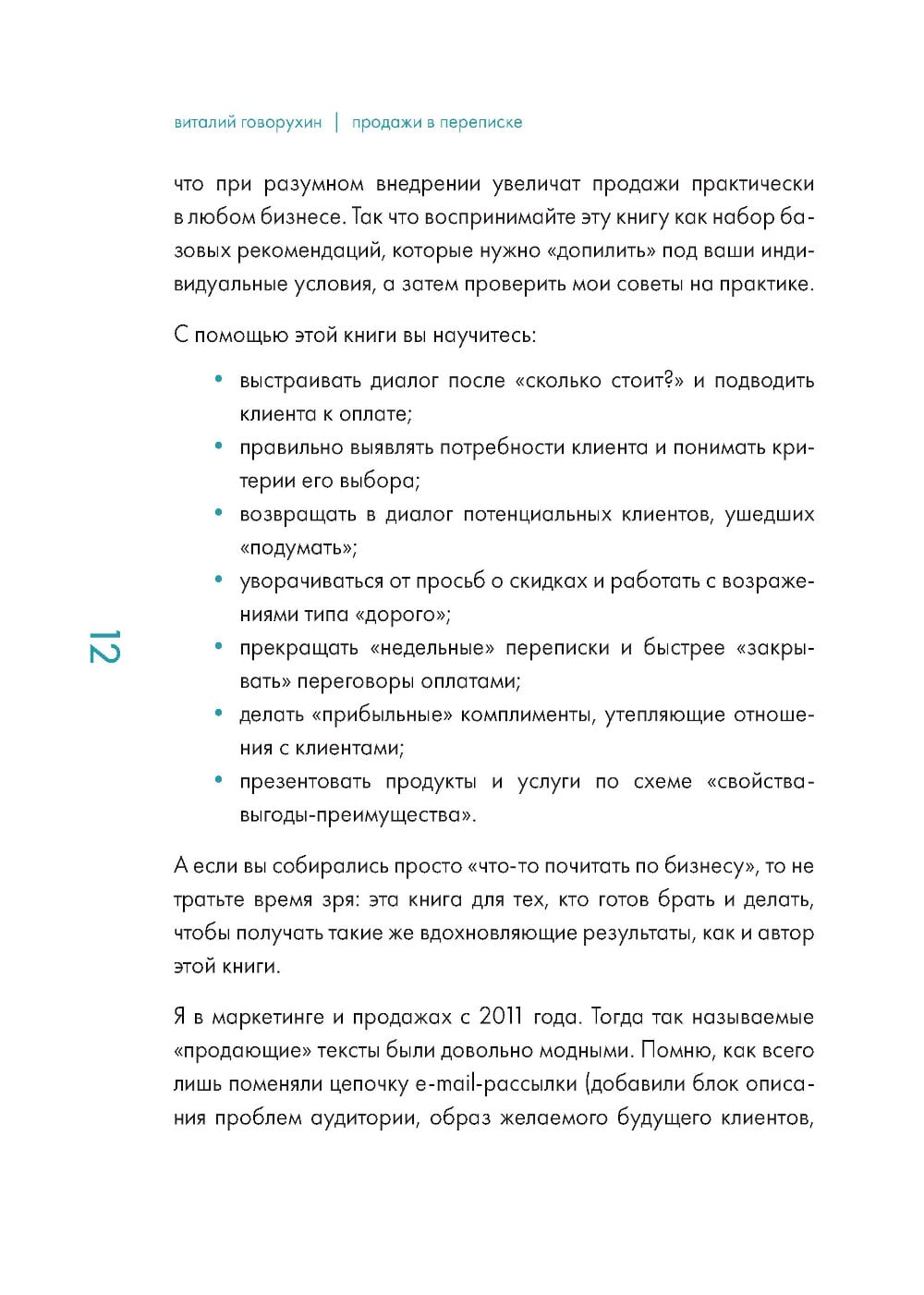 Продавать товары и услуги всегда было нелегко. Звонки раздражают людей, в почту порой не заходят неделями, реклама требует больших вложений, за внимание клиентов нужно бороться. Как в таком случае действовать продавцам? Виталий Говорухин, эксперт в маркетинге и продажах, уверен - настало время мультиканальной работы с клиентами, время тонкого комбинирования звонков, писем, живых встреч и - общения в мессенджерах и соцсетях! «Продажи в переписке» предлагают новый подход к работе с клиентами. Это время мультиканального взаимодействия, где умелое сочетание звонков, писем, личных встреч и общения в мессенджерах становится ключом к успешным продажам.| Издательство | Эксмо |