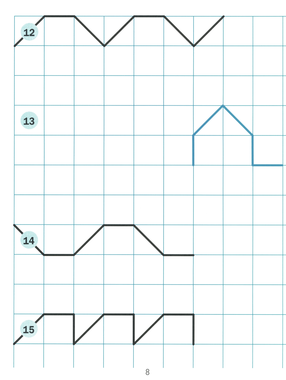 Аннотация: Продолжи узор. Рисуем по клеткам. 68 разных узоров