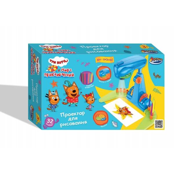 Аннотация: Проектор для рисования Три Кота 32 слайда, 12 фломастеров, альбом ИГРАЕМ ВМЕСТЕ в кор.2*18шт