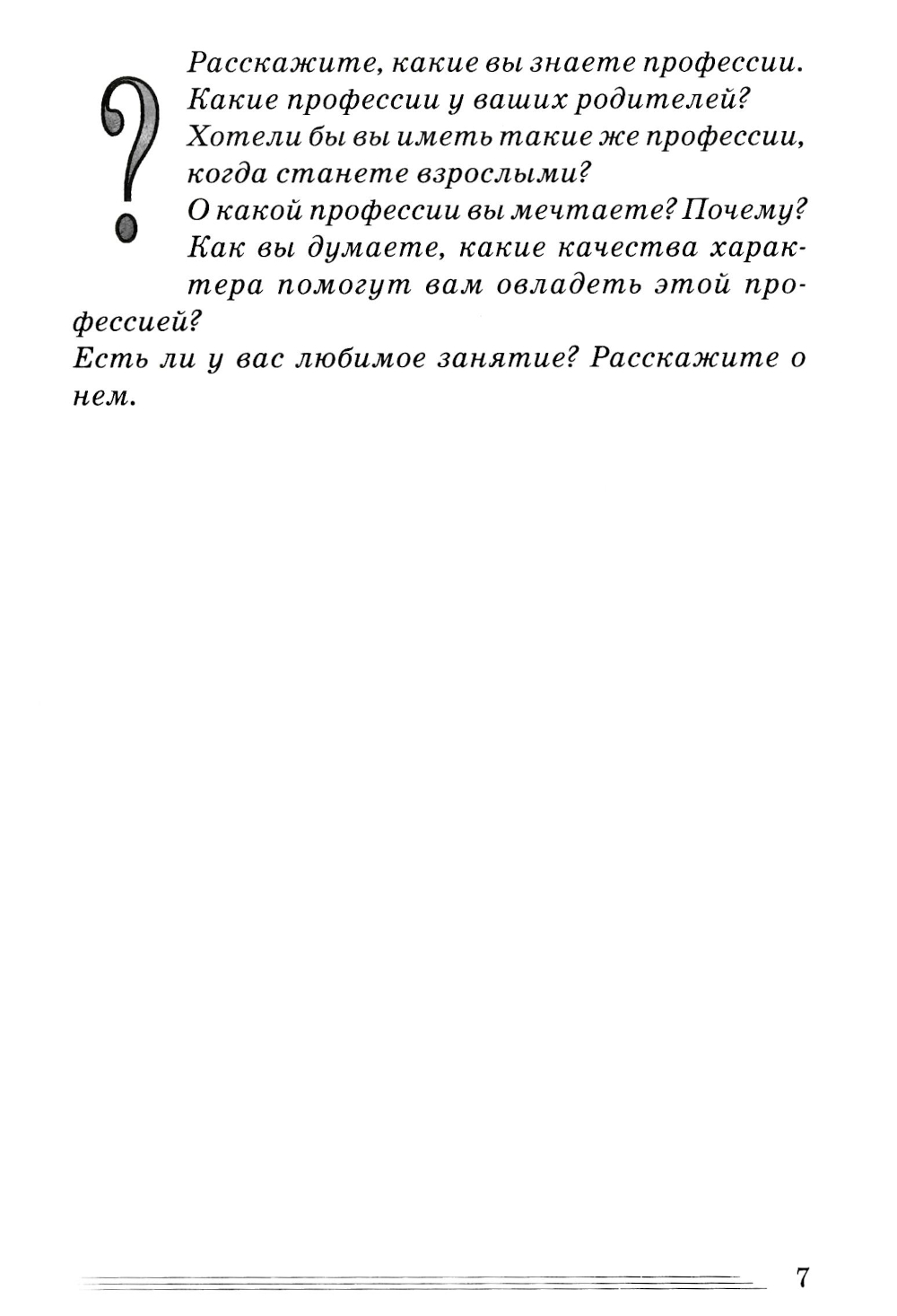 В книге содержится интересная и полезная информация о профессиях и тех качествах, которыми необходимо обладать человеку, желающему получить ту или иную профессию. Стихи и загадки автора помогают пробудить у детей интерес к профессиональной деятельности человека, расширить представления о мире. Книга способствует развитию речи и логического мышления, активизирует внимание и память детей. Материал пособия может быть использован при коллективной и индивидуальной форме обучения. Адресован воспитателям, гувернерам, родителям.