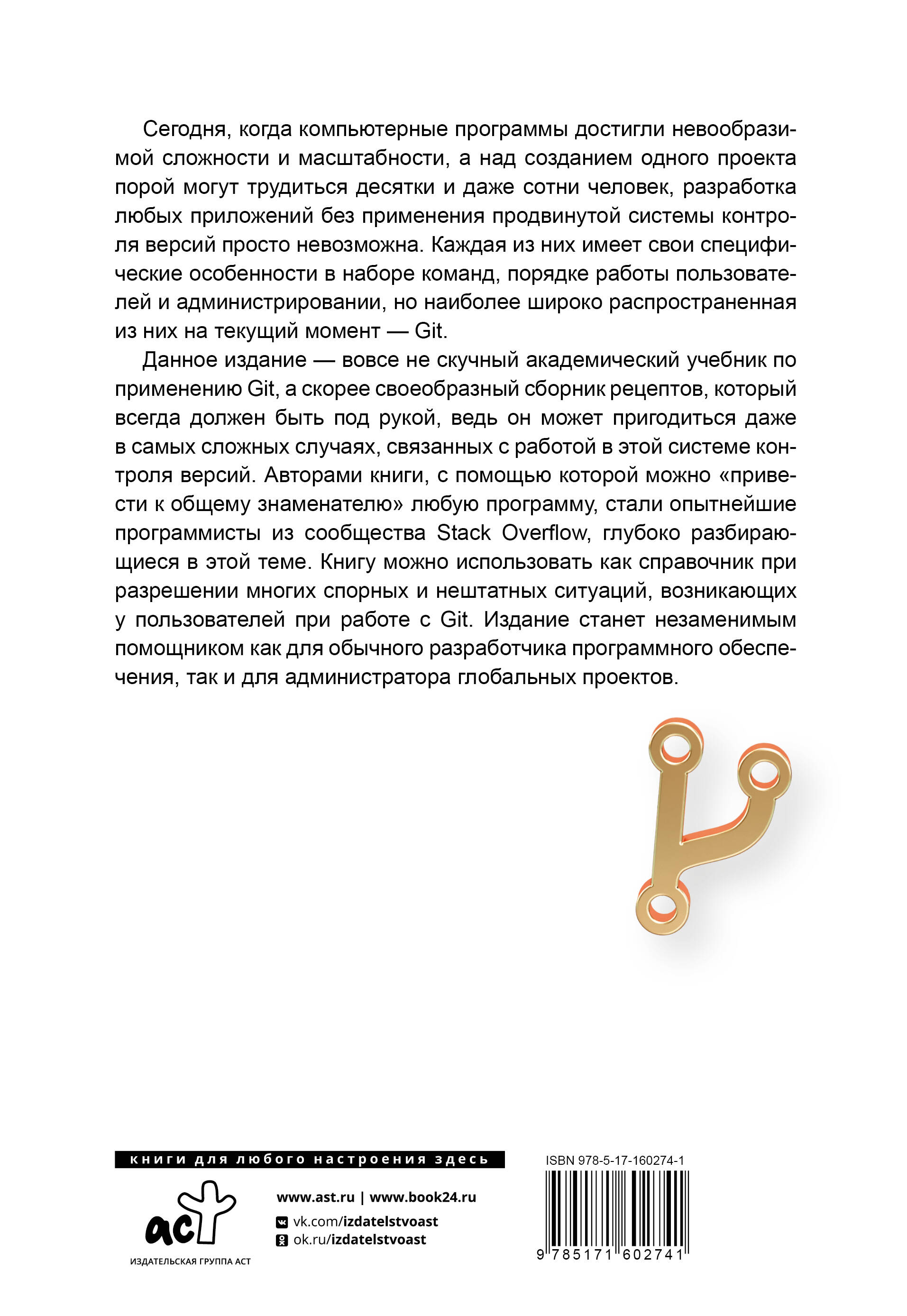 Сегодня трудно представить себе разработку любых приложений и проектов без применения современной системы контроля версий. Наиболее распространенной системой на текущий момент является система контроля версий Git. Представленная Вашему вниманию книга является не академическим учебником по Git, в общеупотребительном смысле этого слова, а скорее сборником рецептов на самые разные случаи, связанные с работой в этой системе. Ее можно использовать как справочник, для разрешения многих спорных ситуаций, возникающих у пользователей при работе с Git. Многое из представленного в этой книге ранее не публиковалось в русскоязычных учебниках по Git, например особенности работы с подмодулями, перенос в Git проектов из других систем контроля версий, а также более широкие возможности работы некоторых команд. Каждый раздел книги взят из топика сайта StackOverflow на тему работы с Git, представляет собой описание одной из ключевых команд со всеми ее параметрами, подкрепленное конкретными примерами. В качестве примеров рассмотрены практические случаи, которые возникали у разработчиков, в процессе длительного опыта использования Git. За каждым таким разделом стоит автор, глубоко разбирающийся в рассматриваемой теме. Эта книга может стать незаменимым помощником, как для обычного разработчика, так и для администратора проектов.| Издательство | Издательство "АСТ" |