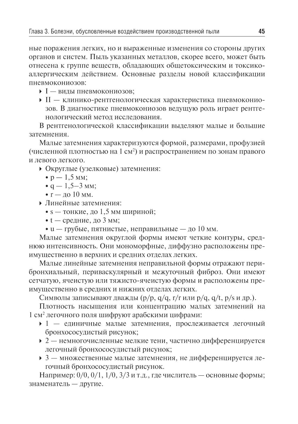 В учебнике изложены вопросы диагностики, лечения и профилактики пылевых заболеваний легких, вибрационной болезни, профессиональной нейросенсорной тугоухости, хронических интоксикаций, профессиональных заболеваний кожи, профессиональных поражений репродуктивной системы, зрительного анализатора, онкологических заболеваний. Рассмотрены такие причины возникновения профессиональных заболеваний, как функциональное перенапряжение и воздействие биологических факторов. Освещены принципы диагностики профессиональных заболеваний при периодических медицинских осмотрах и связи заболевания с профессией в клинической картине профессиональных болезней. В издании представлены основные разделы военно-полевой терапии с учетом особенностей военного труда и боевой обстановки, сведения об истории военно-полевой терапии, медицинской сортировке на этапах эвакуации. Рассмотрены вопросы поражений ионизирующими и неионизирующими излучениями, боевыми отравляющими веществами. Включены также тестовые вопросы и задачи по профессиональным болезням и военно-полевой терапии. Учебник предназначен студентам учреждений высшего медицинского образования, обучающимся по специальности 32.05.01 «Медико-профилактическое дело» по дисциплине «Профессиональные болезни, военно-полевая терапия», и включает базовые модули данной дисциплины.| Издательство | ГЭОТАР-Медиа |