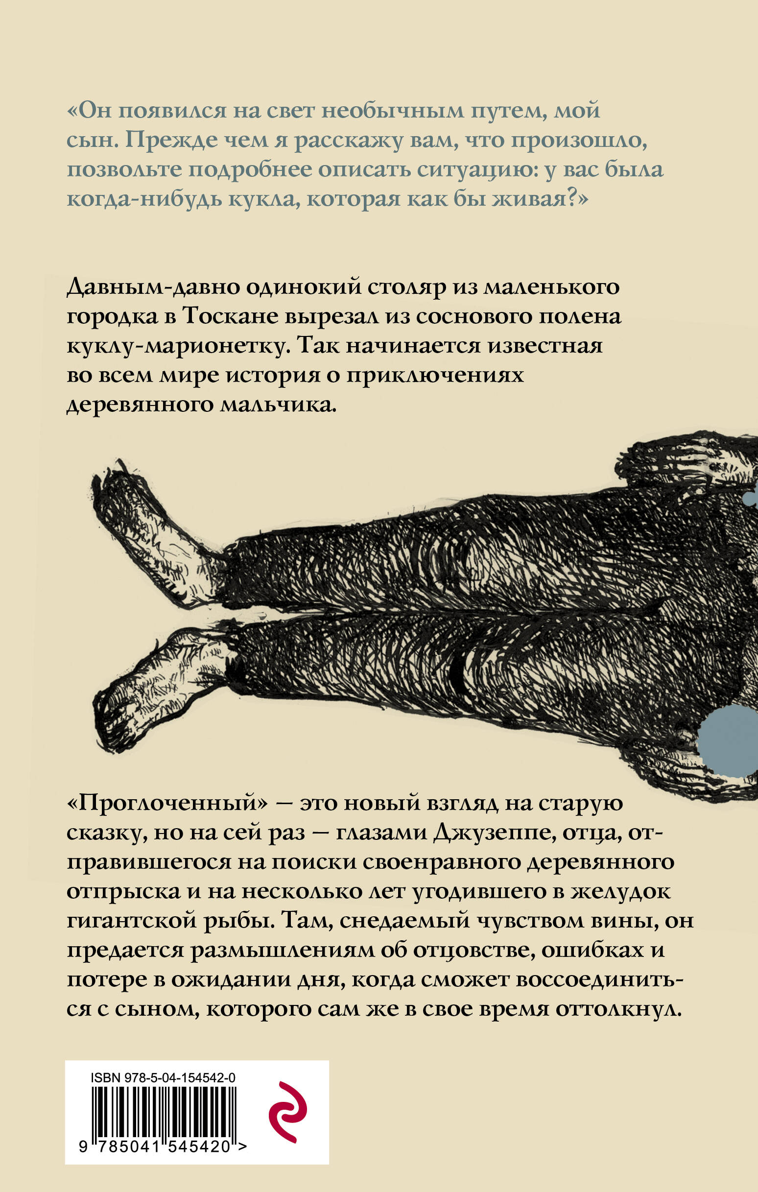 «Я пишу эти строки на страницах чужого журнала, при свече, в чреве гигантской рыбы. Меня проглотили». Давным-давно одинокий столяр из маленького городка в Тоскане вырезал из соснового полена куклу-марионетку. Так начинается известная во всем мире история о приключениях деревянного мальчика. «Проглоченный» - это новый взгляд на старую сказку, но на сей раз - глазами Джузеппе, отца, отправившегося на поиски своенравного деревянного отпрыска и на несколько лет угодившего в желудок гигантской рыбы. Там, снедаемый чувством вины, он предается размышлениям об отцовстве, ошибках и потере, в ожидании дня, когда сможет воссоединиться с сыном, которого сам же в свое время оттолкнул. «Это настоящий дневник Джузеппе, создателя непослушного Пиноккио, который он писал, сидя внутри гигантской рыбы. Безумно и трогательно». - Маргарет Этвуд «Искреннее и причудливое размышление о том, что значит быть сыном, отцом и художником». - Kirkus Reviews «Это отнюдь не диснеевская сказка, а высокохудожественная, пронзительная зарисовка о вине, безумии, духовном поиске и неизбежном возмездии». - Booklist| Издательство | ООО "Издательство "Эксмо" |