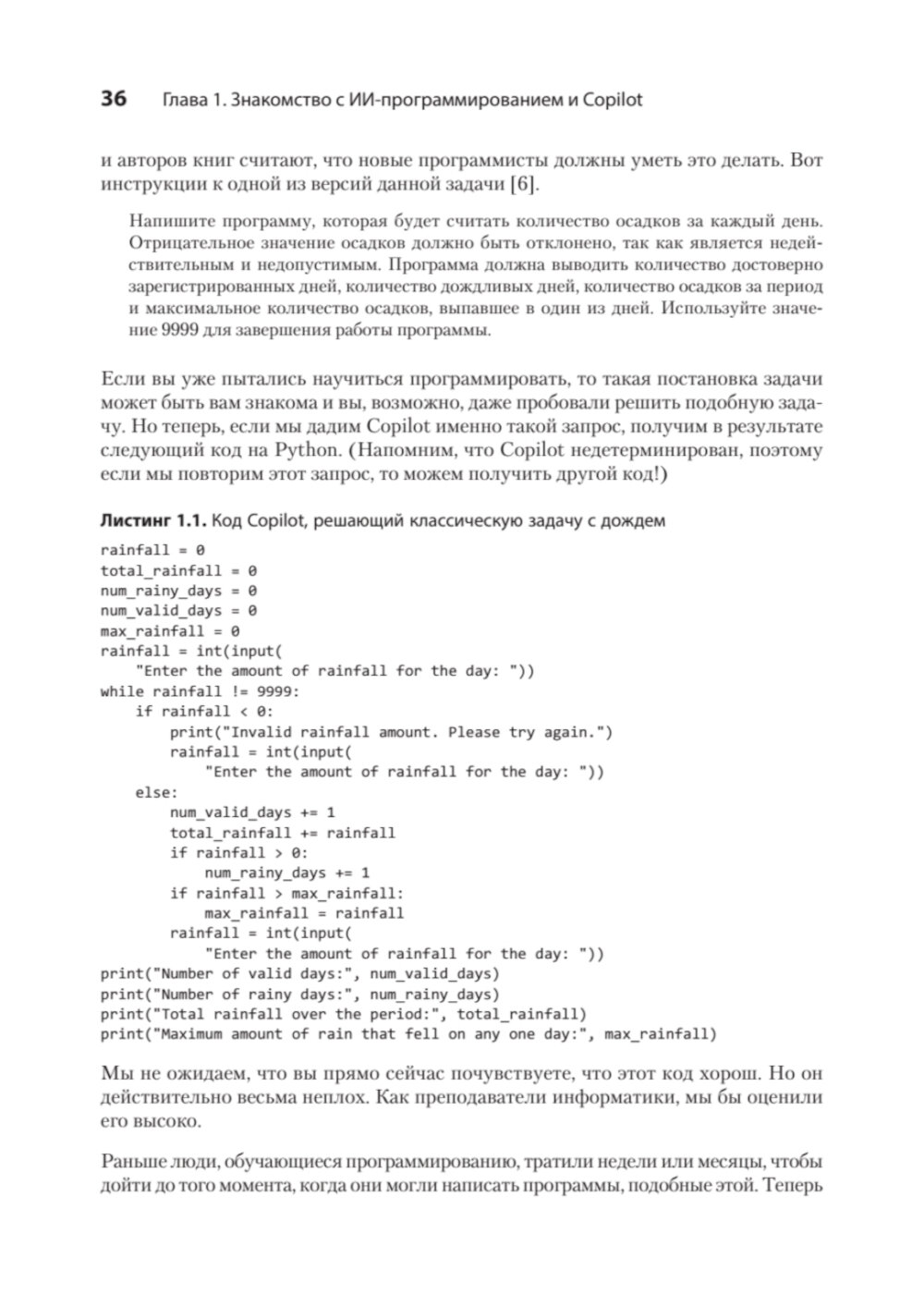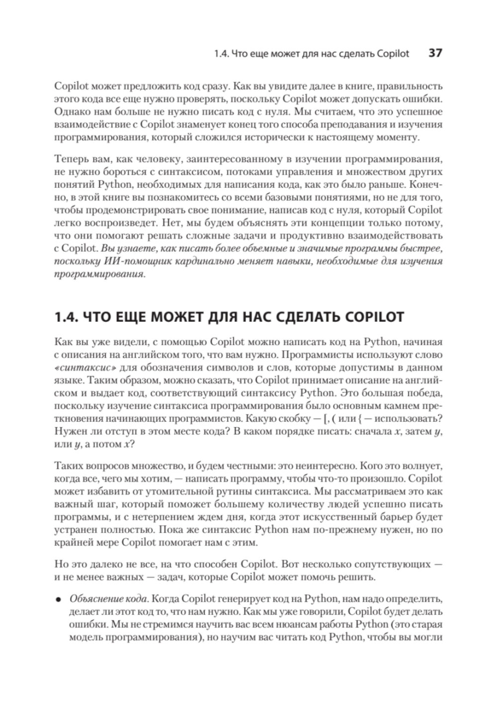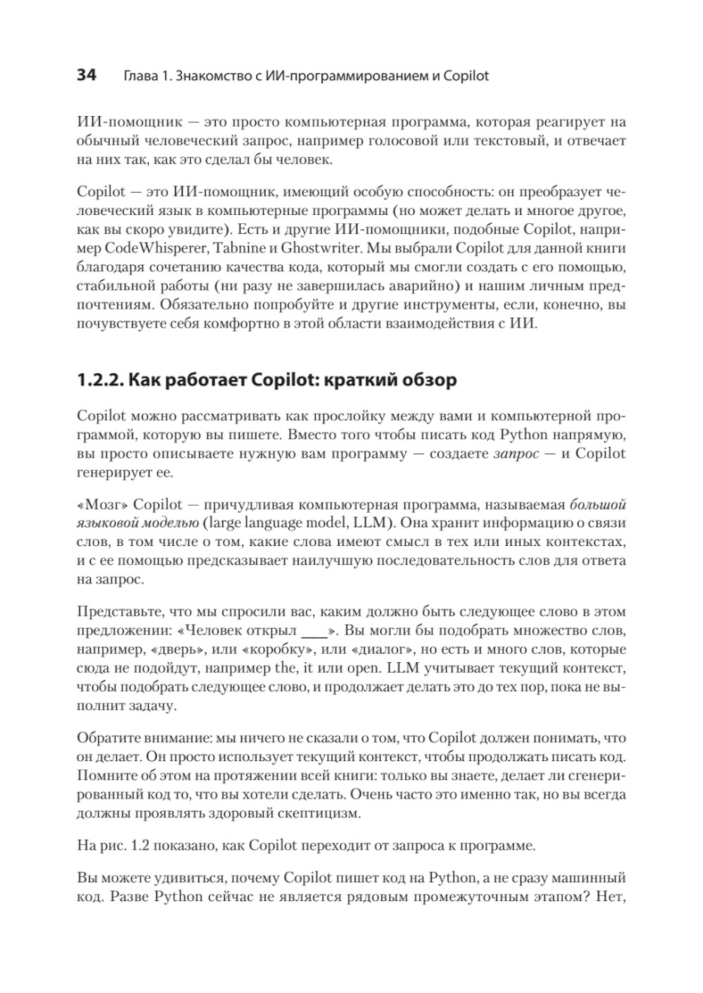 В наши дни люди пишут компьютерные программы совсем не так, как раньше. Используя GitHub Copilot, можно простым языком описать, что должна делать программа, а искусственный интеллект тут же сгенерирует ее. Узнайте, как создавать и улучшать программы на Python с помощью ИИ, даже если прежде вы не написали ни строчки компьютерного кода. Сэкономьте время на рутинном программировании и воспользуйтесь услугами ИИ, способного мгновенно воплотить ваши идеи в жизнь. Заодно выучите Python!| Издательство | Питер |