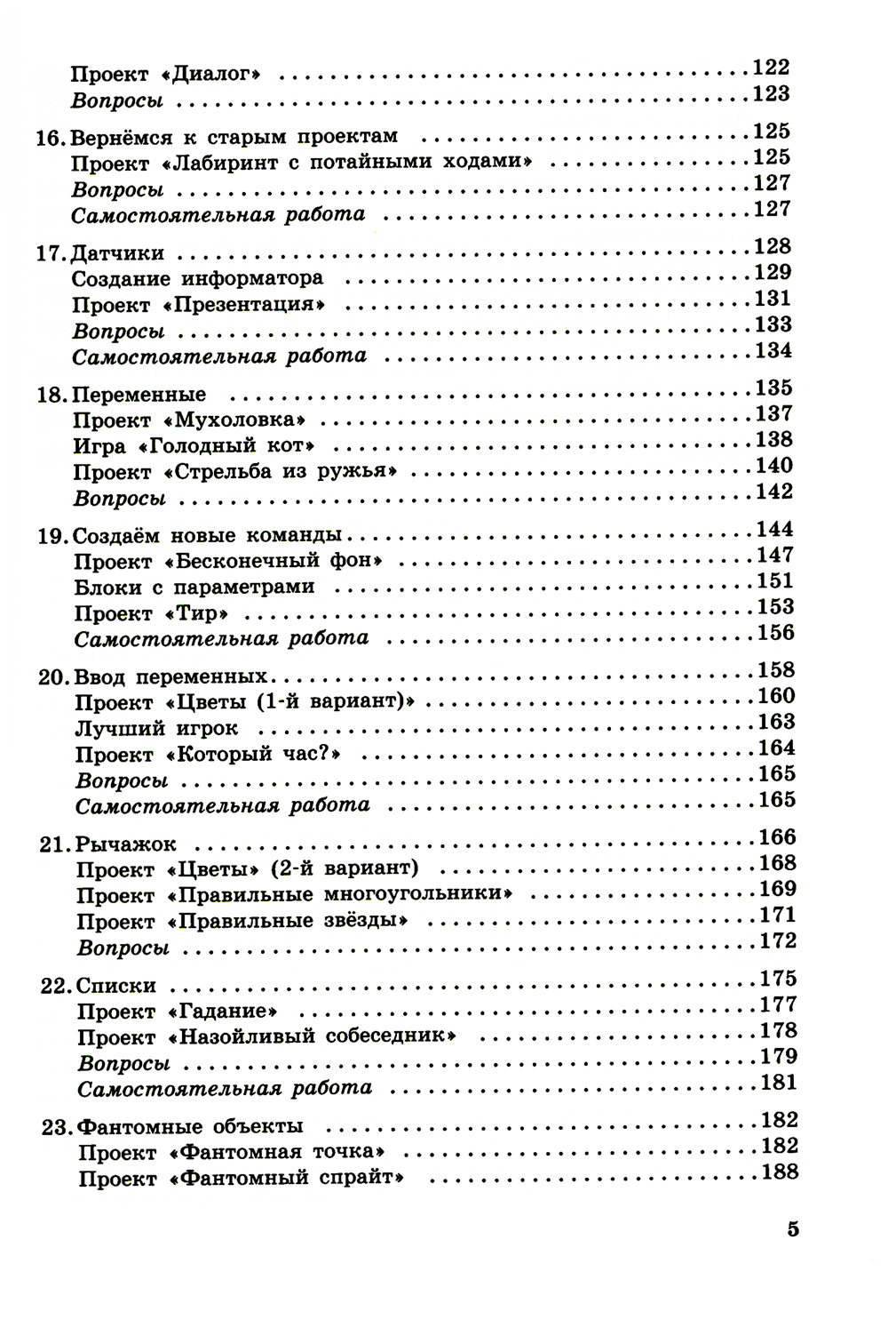 В данном пособии дети смогут познакомиться с основами программирования в среде Scratch (Скретч). Особенность этой среды заключается в том, что программированию обучаются играя. В Скретче можно сочинять истории, рисовать, оживлять придуманные персонажи, создавать презентации и игры. В книге содержится множество проектных заданий, при этом задания на компьютере чередуются с чтением и выполнением заданий в письменном виде. Все задания носят творческий характер, что позволит детям развивать знания об алгоритмах, полученные в начальной школе в предметной области «Математика и информатика», а также овладевать инструментами программирования в среде Скретч и применять эти знания и умения при выполнении проектных заданий из других предметных областей. Книга предназначена для дополнительного образования в школе и дома. Она будет полезна как руководителям кружков, так и родителям юных программистов.| Издательство | Лаборатория знаний |