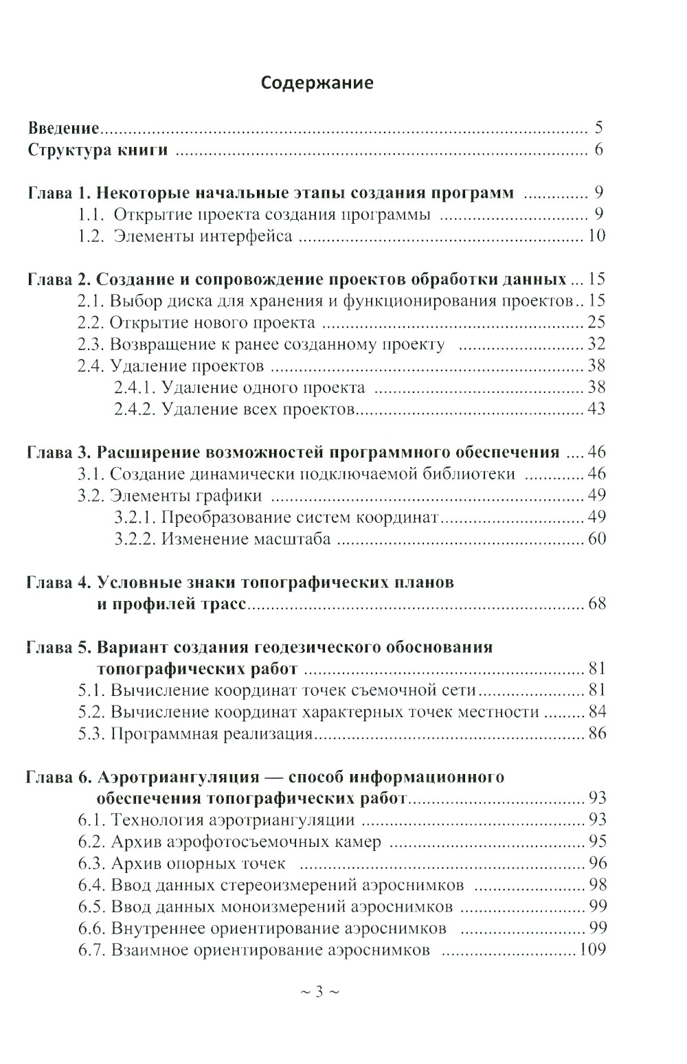 Рассмотрены возможности использования элементов программирования на языке С# в среде Microsoft Visual Studio для решения разнообразных задач геоматики. Показана связь процессов кадастра и географических информационных систем. Предложены функции для решения задач кадастра и инженерных изысканий на основе данных геодезии и аэротриангуляции. Программно реализовано цифровое моделирование местности, в котором геодезические и геологические изыскания рассматриваются вместе. Создана модель учета перемещаемых земляных масс. Представлено большое количество готовых к использованию функций с исходными текстами и возможностью адаптировать их к различным условиям. Для студентов инженерно-геодезических и кадастровых направлений, а также специалистов в области геоматики, решивших улучшить качество и скорость своей работы с помощью внедрения элементов программирования.| Издательство | Инфра-Инженерия |