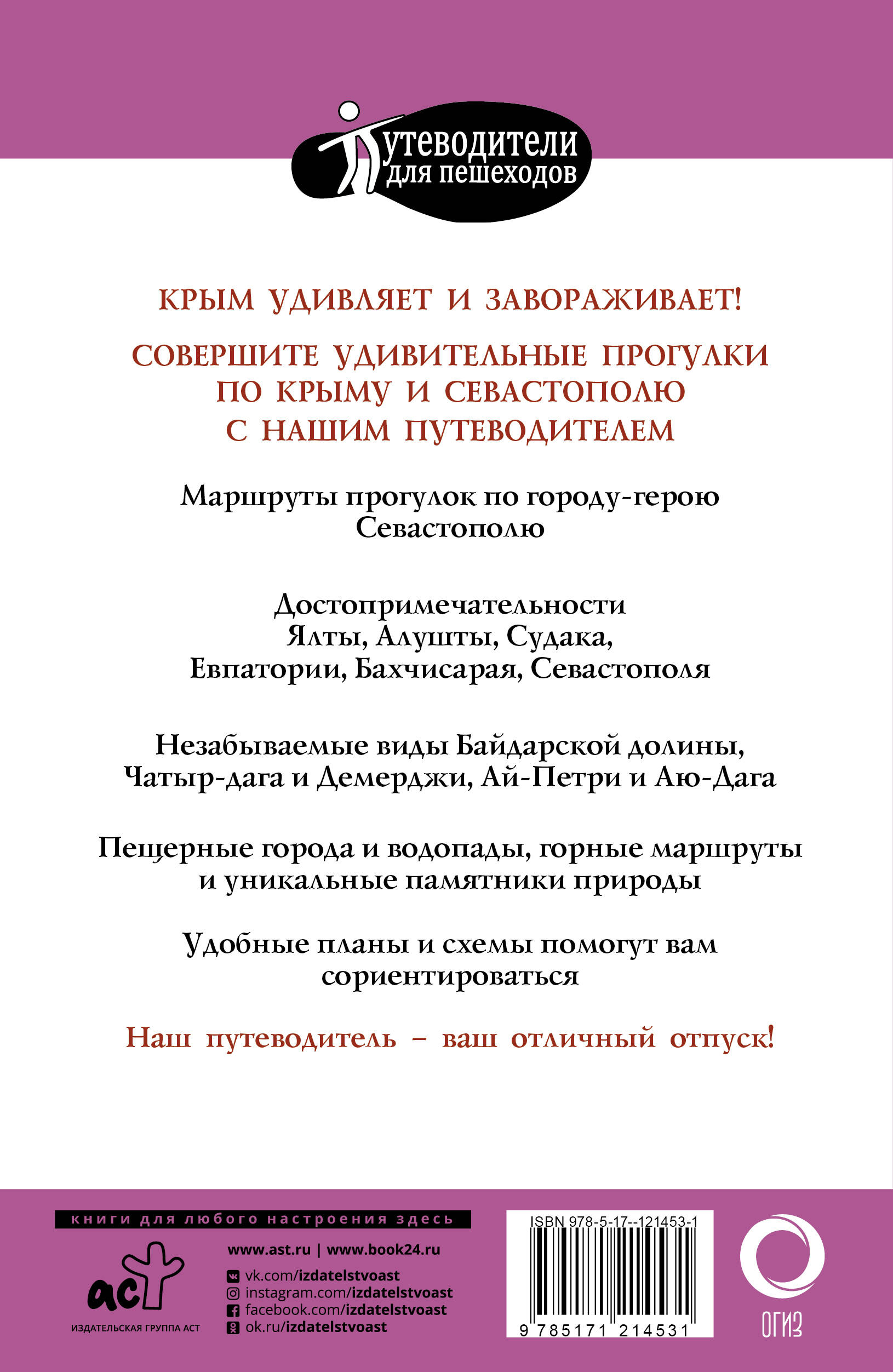 На страницах этой книги вы найдете описания интереснейших маршрутов по Крыму. Совершите увлекательные прогулки, которые под силу каждому. Прочитаете об экскурсиях по городам и доступным природным достопримечательностям. Схемы и планы значительно облегчат ориентирование. Путеводитель рассчитан на самостоятельных путешественников, готовых ближе познакомиться с природой и историей Крыма. Чтобы экскурсии без гида были познавательными, в статьях приводятся исторические данные, содержатся практические советы.| Издательство | Издательство "АСТ" |