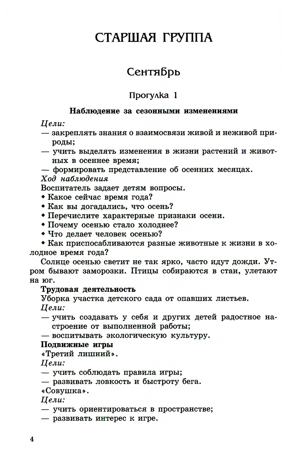Методическое пособие для воспитателей старших и подготовительных к школе групп содержит полное описание прогулок в разное время года.