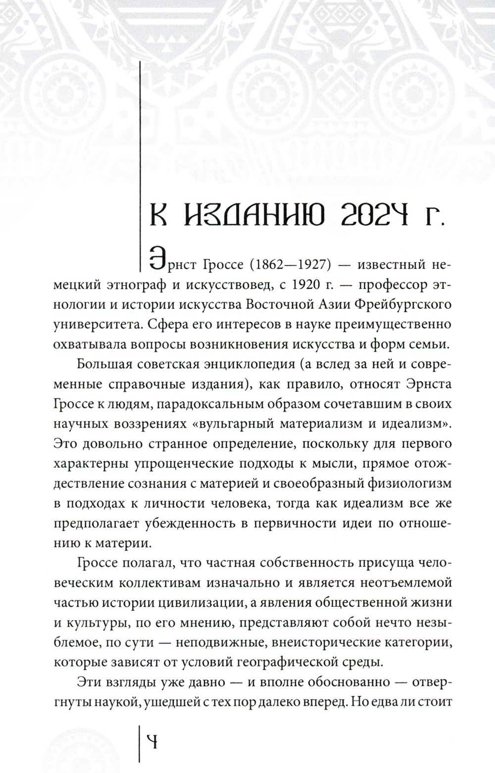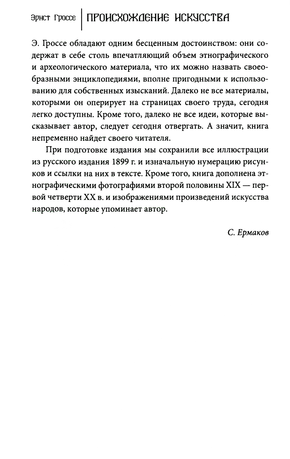 Труд видного немецкого этнографа и искусствоведа Э. Гроссе (1862-1927) появился в русском переводе в 1899 г. С тех пор взгляды ученого не раз подвергались справедливой критике и пересмотру, а научные воззрения на методологию изучения искусства в древности и причины его возникновения менялись и развивались. Но все это нисколько не лишает его исследование важнейшего достоинства - фундаментальности, энциклопедичности и высокой насыщенности фактическим материалом, который по-прежнему обладает значительной ценностью.| Издательство | Вече |