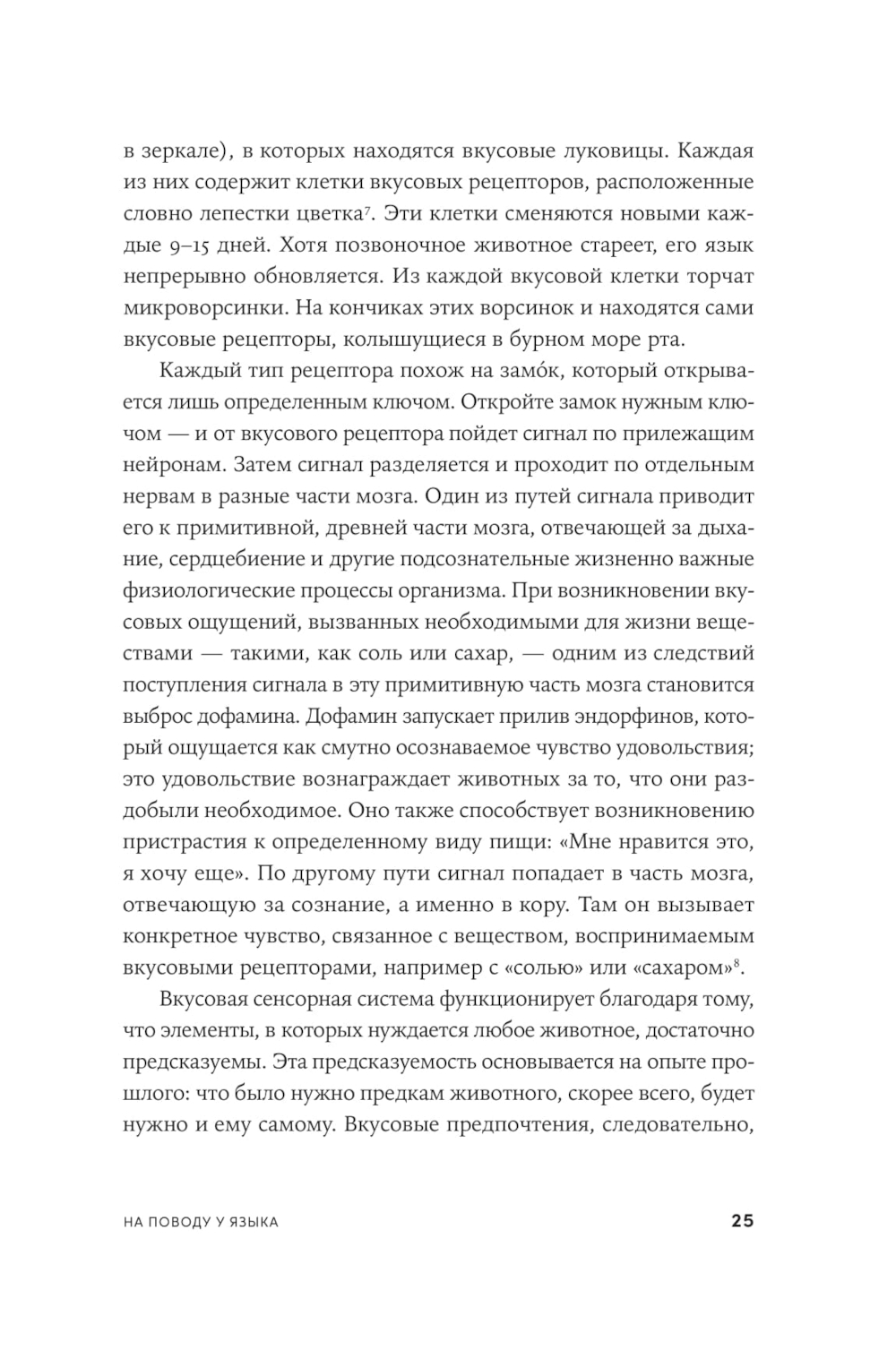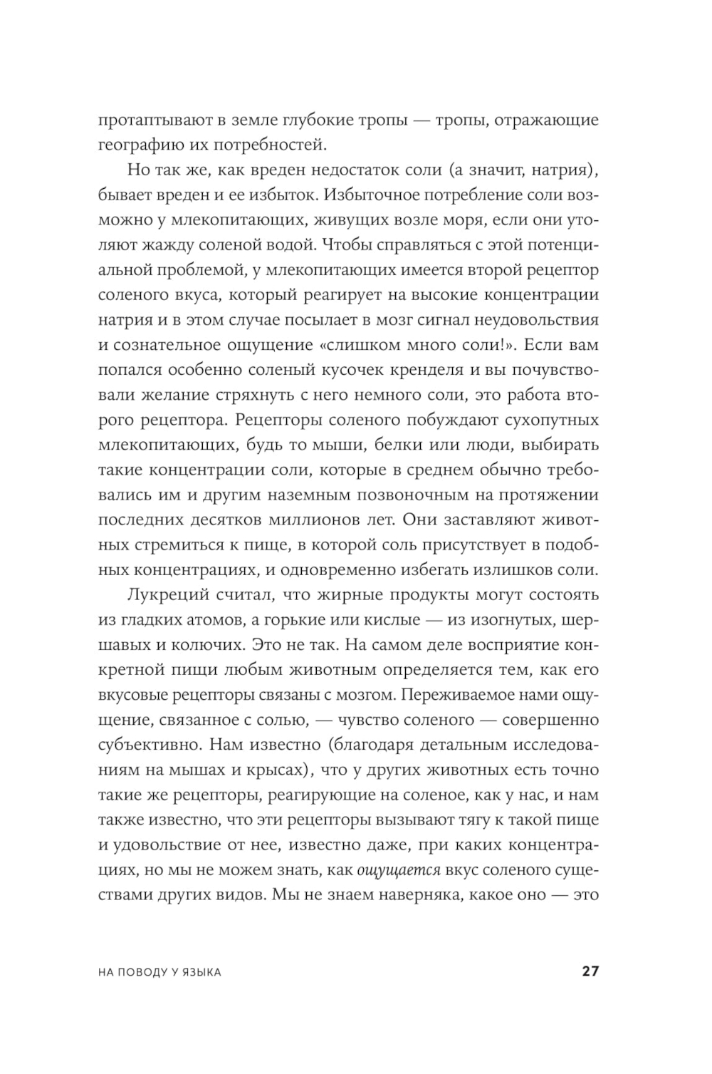 Природа, как говорят, приглашает нас к столу с помощью аппетита и вознаграждает вкусом. Но что именно представляет собой вкус? Почему одни вкусы нам нравятся, а другие нет? «Происхождение вкусов» - увлекательное погружение в наваристую гущу этих вопросов. Щедро сдабривая повествование искренностью и остроумием, авторы рассказывают, как поиск приятных вкусов оказался секретным ингредиентом всей человеческой истории. Вы узнаете о роли вкусовых предпочтений в создании первых орудий труда и вымирании гигантских млекопитающих, об эволюции самых аппетитных и питательных плодов и о формировании нашей социальности. А на десерт вам предложат лучший способ квасить мастодонта, рассказ о связи сыра с палеолитическим искусством - и много чего еще. Панируя мастерство изложения новейшими научными данными, авторы книги сервируют перед читателем историю наших отношений с едой.| Издательство | Альпина нон-фикшн |