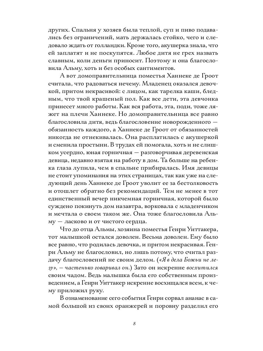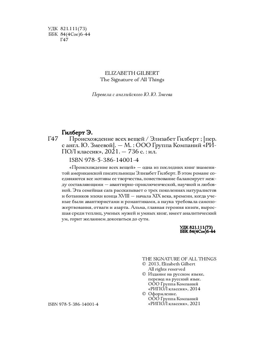Время действия: конец XVIII - конец XIX веков. Место действия: Лондон и Перу, Филадельфия и Таити, Амстердам и самые отдаленные уголки Земли. Мудрый, глубокий и захватывающий роман о времени, - когда ботаника была наукой, требовавшей самопожертвования и азарта, отваги и готовности рисковать жизнью, - когда ученый был авантюристом и первооткрывателем, дельцом и романтиком, - когда люди любили не менее страстно, чем сейчас, но сдержанность считалась хорошим тоном. «Происхождение всех вещей» - великий роман о великом столетии.