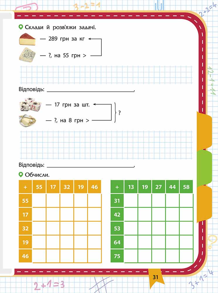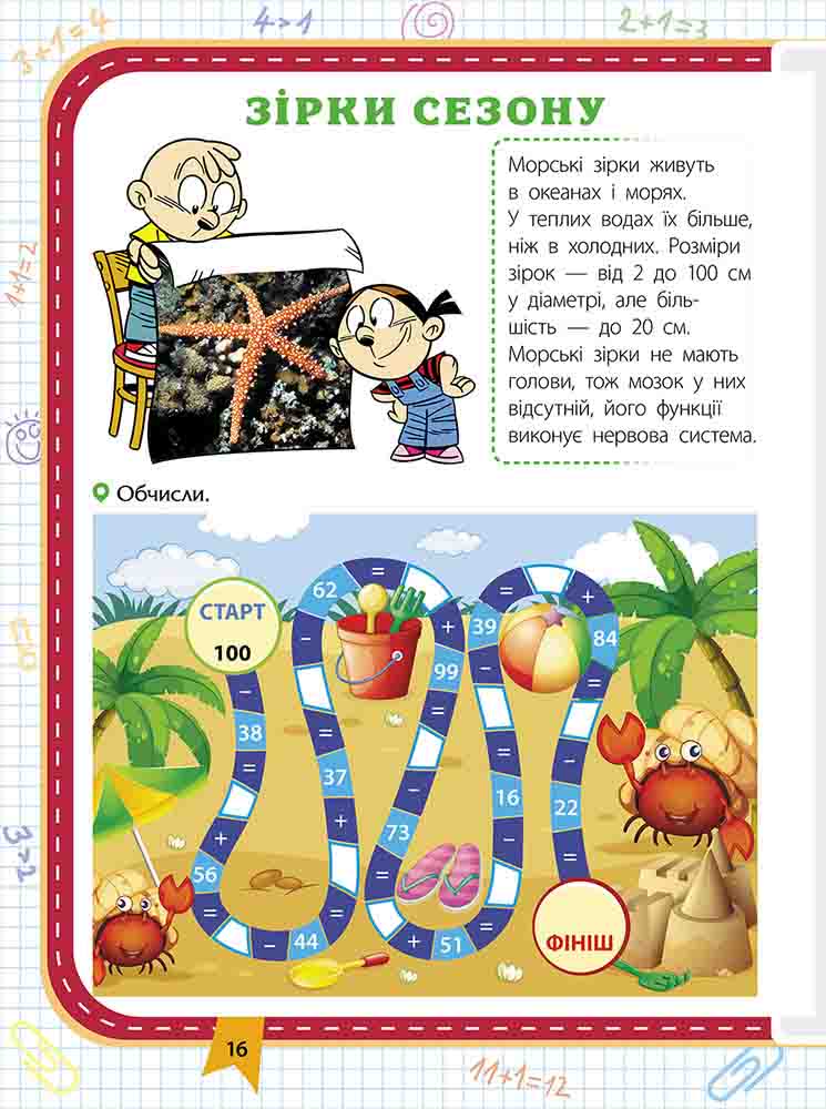 ВІДПОВІДАЄ КОНЦЕПЦІЇ НОВОЇ УКРАЇНСЬКОЇ ШКОЛИ. Посібник «Прокачай математику. Зустрічай 3 клас» стане незамінним помічником, адже допоможе просто і весело повторити вивчений шкільний матеріал і удосконалити отримані навички. Приємним доповненням до завдань стануть яскраві наліпки з корисною інформацією. Книга містить: різнорівневі вирази і задачі; цифрові лабіринти і ланцюжки; завдання на логіку; цікаві факти; яскраві наліпки для навчання та забавок. Запрошуємо в захоплюючу подорож до світу цифр, кожен учасник якої отримає цікаві тренувальні вправи та ексклюзивну відзнаку! Чому варто придбати: Невже математика - така нудна і важка наука? Хіба це лише зошит у клітинку, де задача, розв'язання, відповідь, оцінка? Звісно ж, ні! Математика - це 7 нот, 33 літери українського алфавіту, номер рідного будинку і важливого телефону. Вона всюди: у годиннику й термометрі, на важелях і цінниках, у нумерації маршрутів та грошових одиницях. Як без цих знань? І зовсім математика не грізна, а навіть дуже захоплива. Прокачаймо її разом! Відкрийте цей посібник - і побачите, що він яскравий, грайливий і корисний. Цікаві й веселі завдання можна розв'язувати як самостійно, так і в команді з друзями чи батьками. Пориньте у чарівні пригоди разом із королевою наук і здобудьте справжню відзнаку юного науковця. Прокачаймо її разом! Відкрийте цей посібник - і побачите, що він яскравий, грайливий і корисний. Цікаві й веселі завдання можна розв'язувати як самостійно, так і в команді з друзями чи батьками. Пориньте у чарівні пригоди разом із королевою наук і здобудьте справжню відзнаку юного науковця.| ISBN | 978-617-8229-71-9 |