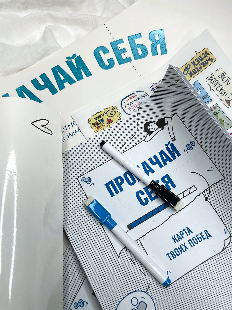 Ольга Викторова - клинический психолог, работает с детьми и их родителями в ДокДети и ДокМед. Помогает улучшить качество жизни и справиться со сложностями во взаимоотношениях с окружающими людьми, негативными эмоциями, тревожными и депрессивными мыслями. "Прокачай себя" - это интерактивная система, которая объединяет мощь визуализации с практикой конкретных действий. С ее помощью ты сформулируешь желание так, чтобы Вселенная тебя услышала, прокачаешь осознанность и настроишь внутренний радар на возможности, совершишь первый шаг к цели и запустишь цепь волшебных событий. Внутри ты найдешь все необходимое для создания своей идеальной реальности: • Карта желаний из плотного картона для визуализации глобальных целей и самых заветных желаний. • Брошюра с красочными картинками и наклейками, которые помогут тебе сделать карту яркой и индивидуальной. • Инструкция и упражнения, помогающие проработать цели, проанализировать прогресс и записать свои мысли. • Магнитная карта для фиксации небольших, но важных желаний, ведь волшебство начинается с малого! Для того чтобы притянуть крупные цели, важно исполнить хотя бы одну маленькую мечту. Часто мы забываем о таких простых радостях, как поход в кино, обед в кафе или покупка новых кроссовок, а ведь именно они наполняют жизнь яркими красками и дают ощущение, что мечты сбываются. Записывай их на магнитной карте, вычеркивай по мере исполнения и чувствуй магию каждого прожитого дня! • Два цветных маркера для записи.| Издательство | Издательство "АСТ" |