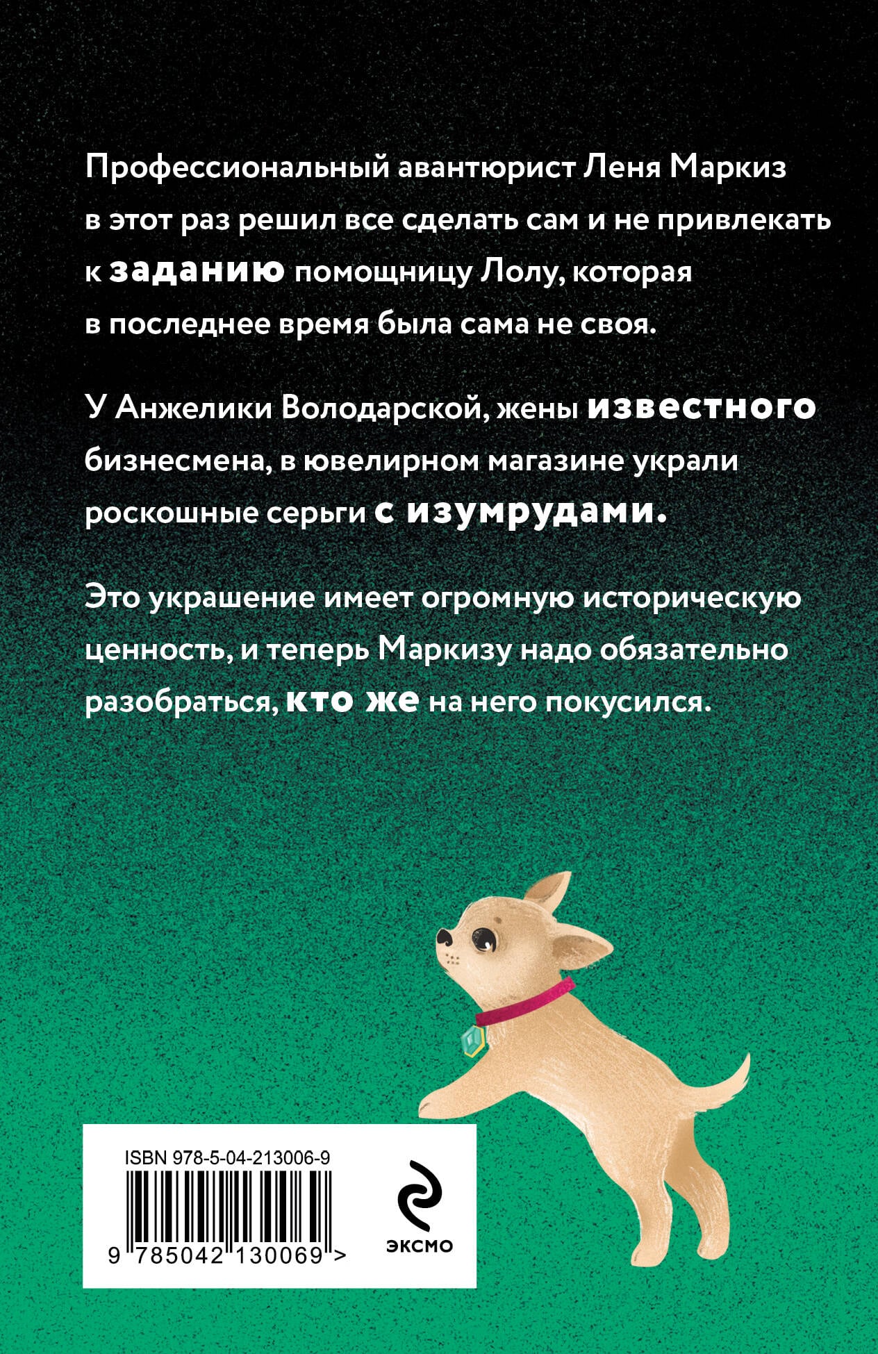 Профессиональный авантюрист Леня Маркиз в этот раз решил все сделать сам и не привлекать к заданию помощницу Лолу, которая в последнее время была сама не своя. У Анжелики Володарской, жены известного бизнесмена, в ювелирном магазине украли роскошные серьги с изумрудами. Это украшение имело огромную историческую ценность, и теперь Маркизу надо обязательно разобраться, кто же на него покусился.| Издательство | ООО "Издательство "Эксмо" |