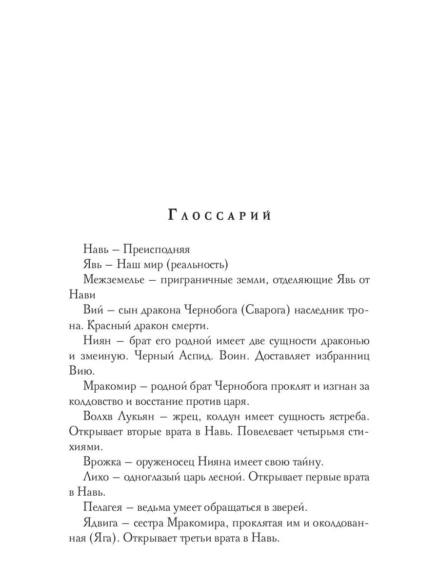 Арина - студентка из провинции, знакомится с девушкой Лизой из очень богатой семьи, они становятся лучшими подругами. В разгар одной из вечеринок в доме Лизы Арине становится плохо, а когда она приходит в себя, то оказывается, что ее похитили и не просто похитили, а отдали на откуп царю Преисподней. Она, девушка из мегаполиса, попала совсем в иной мир, где царит беззаконие и хаос. И с этого момента нет у нее больше ни дома, ни имени, ни прошлого, и должна она стать, как и многие другие до нее, "невестой" жестокого царя Нави - Вия. И не сбежать, не скрыться от злой судьбы и от смерти неминуемой… особенно если в сопровождающих у девушки брат царя и лучший из его воинов - Черный Аспид.