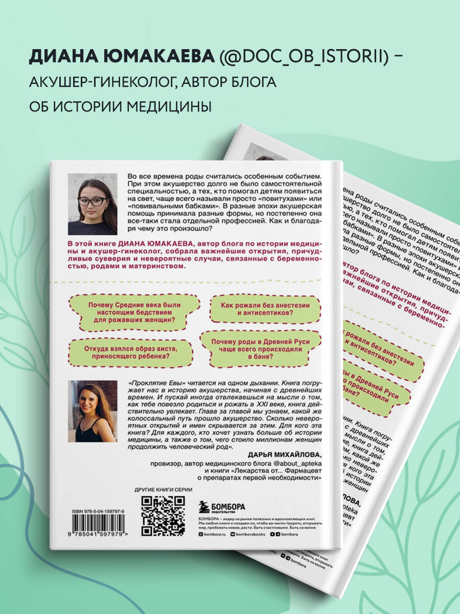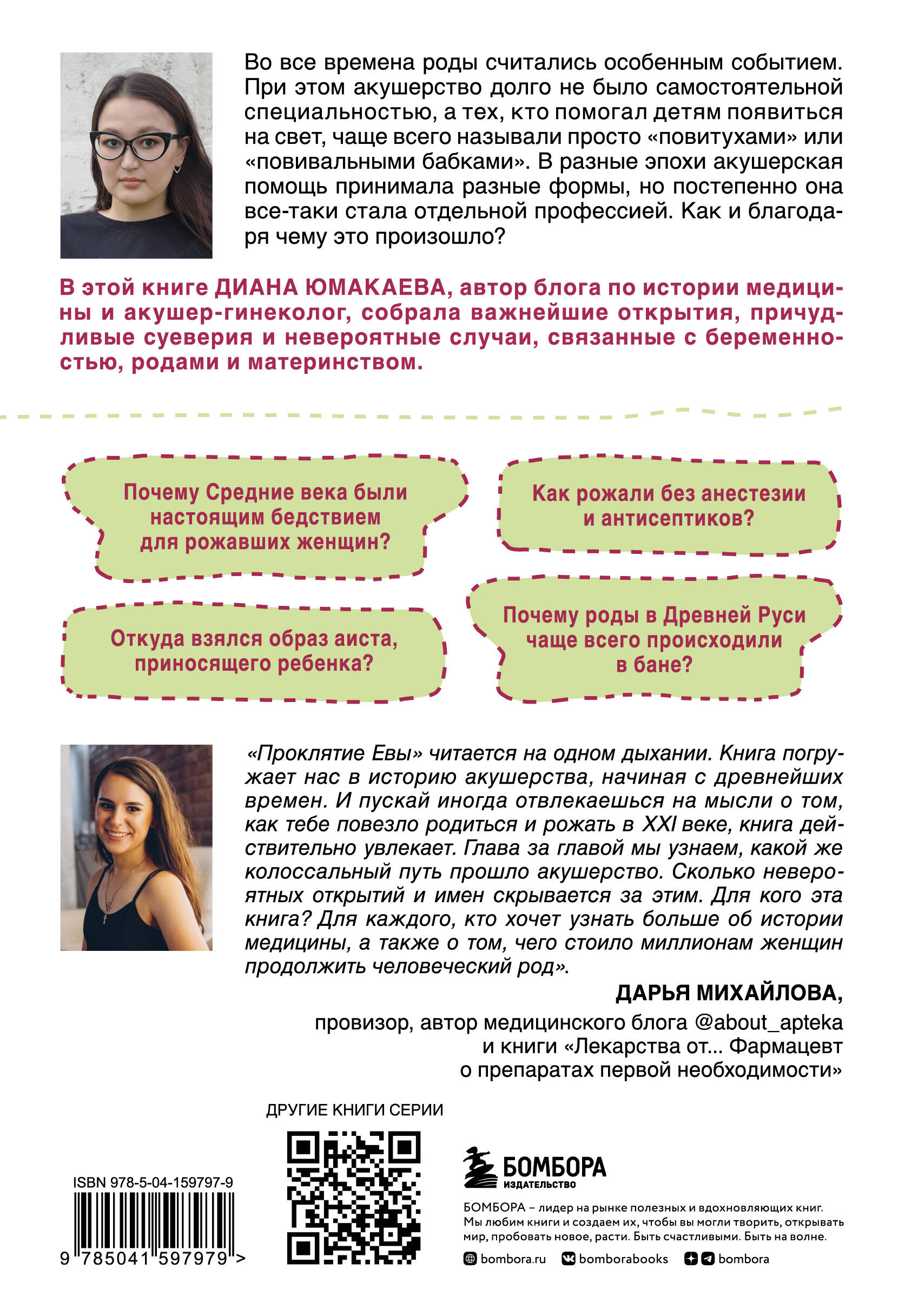 В наше время медицина обеспечивает женщинам максимально безопасные роды, которые могут привести к проблемам в единичных случаях. Однако в древности такого не было. Женщины понимали, что роды представляют для них большую опасность. Многие боялись рожать, так как знали, что от кровопотери или инфекций умирает едва ли не каждая вторая роженица. Книга Дианы Юмакаевой, акушера-гинеколога и автора блога по истории медицины, перенесет вас во времена, когда роды и беременность окружало множество суеверий. Интересные факты, которые вас удивят: - Роды не у всех племен являлись интимным мероприятием. У аборигенов Сандвичевых островов было принято созывать публику. Причем зрители могли комментировать происходящее и давать роженице советы. - На протяжении веков женщины предпочитали рожать в самых разнообразных позах. Например, древние персиянки складывали из камней небольшую пирамиду, о которую упирались руками и коленями, - так проходили роды. - В Голландии родильный стул был обязательной частью приданого невесты. - Чтобы избежать бесплодия, девушки из аристократических семей носили пояс, украшенный золотыми узорами в виде раковин каури, символизирующих женские половые органы. - У коренных американцев женщине полагалось провести двадцать дней после родов в своей комнате в абсолютной темноте. Солнечный свет не должен был касаться кожи матери и ребенка. По окончании срока в доме устраивали торжество. - Гиппократ «обвинял» матку во всех напастях. В «Корпусе Гиппократа» впервые встречается диагноз «блуждающая матка». Считалось, что она может свободно путешествовать по организму женщины. - Первыми врачами в Риме были пленные греки, имевшие статус рабов. Каждому обеспеченному гражданину предписывалось иметь в доме раба-лекаря. «"Проклятие Евы" читается на одном дыхании. Книга погружает нас в историю акушерства, начиная с древнейших времен. И пускай иногда отвлекаешься на мысли о том, как тебе повезло родиться и рожать в 21-м веке, книга действительно увлекает. Глава за главой мы узнаем, какой же колоссальный путь прошло акушерство. Сколько невероятных открытий и имен скрывается за этим. Для кого эта книга? Для каждого, кто хочет узнать больше об истории медицины, а также о том, чего стоило миллионам женщин продолжить человеческий род». - Дарья Михайлова, провизор, автор медицинского блога about_apteka и книги «ЛЕКАРСТВА от... Фармацевт о препаратах первой необходимости и о том, чему не место в вашей аптечке»| Издательство | ООО "Издательство "Эксмо" |