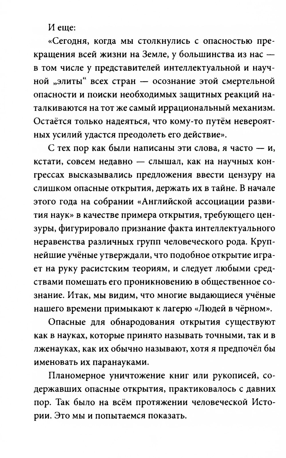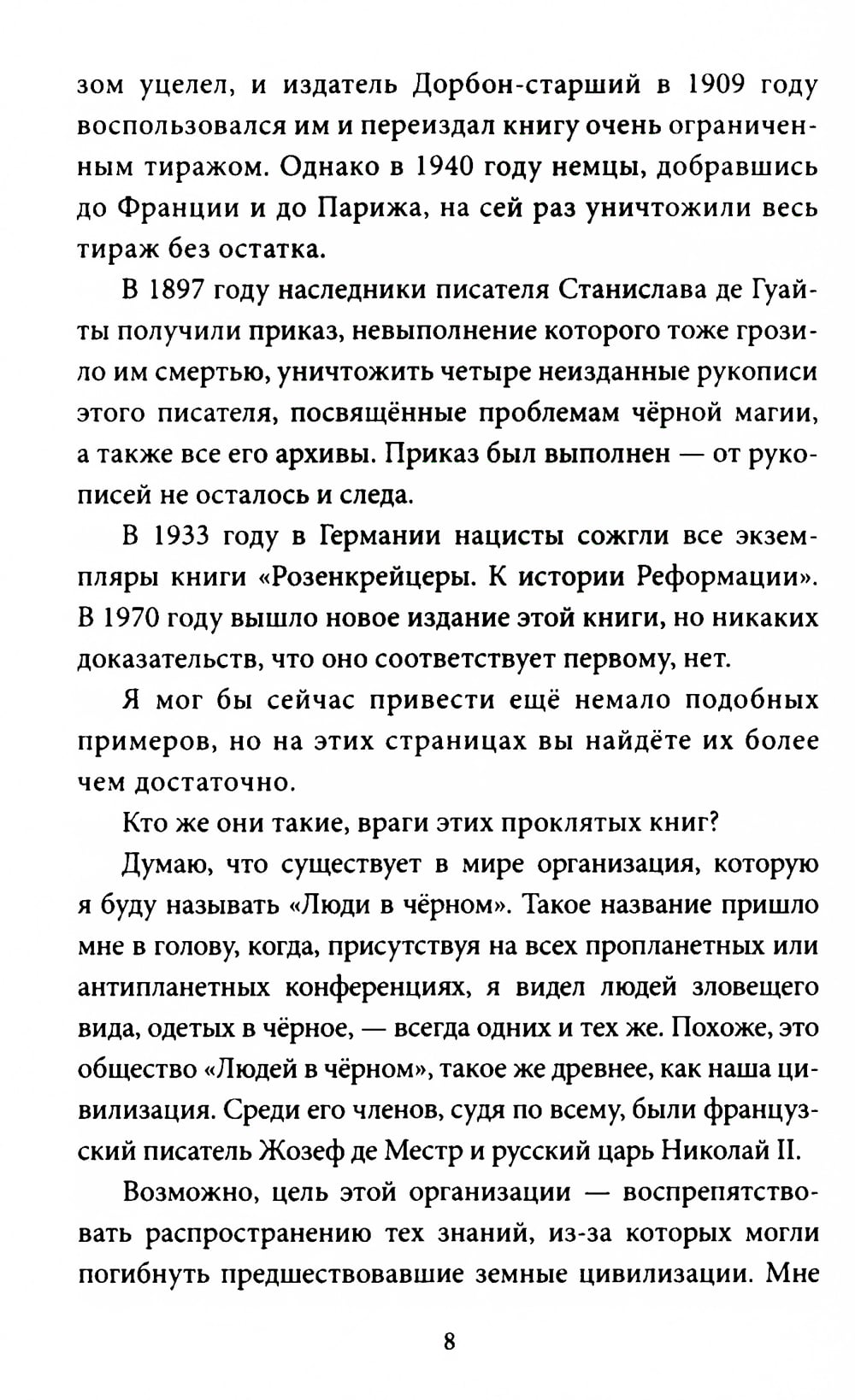 В этой книге собраны две важнейшие работы французского писателя, философа и изобретателя Жака Бержье. В «Проклятых книгax» он прослеживает драматическую судьбу ряда удивительных манускриптов, рукописей и книг с древнейших времен до наших дней. Это загадочная «Книгa Тога»; «Стансы Цзяна»; книга, лишающая рассудка - «Экскалибур»; рукопись труда русского ученого М.М. Филиппова и некоторые другие. Все эти творения человеческого разума тем или иным способом уничтожались. И причину этого явления, к которому автор относит и разорение знаменитой Александрийской библиотеки, величайшей сокровищницы человеческих знаний, автор видит в одном: содержание их угрожало существованию темной цивилизации. В книге «Тайные хозяева жизни» Жак Бержье доказывает реальность присутствия среди нас Тайных хозяев времени, которые путешествуют в нем по своему желанию. Автор попытался проанализировать и разгадать все временные парадоксы, которыми зачастую пользуется научная фантастика. В книге рассказывается о приключениях удивительных людей, очень похожих на пришельцев из будущего, живущих в наше время, а также живших в прошлые века. Некоторые из них стали легендами, как, например, Мелхиседек, император Фо-Хи или Леонардо да Винчи и др.| Издательство | Родина |