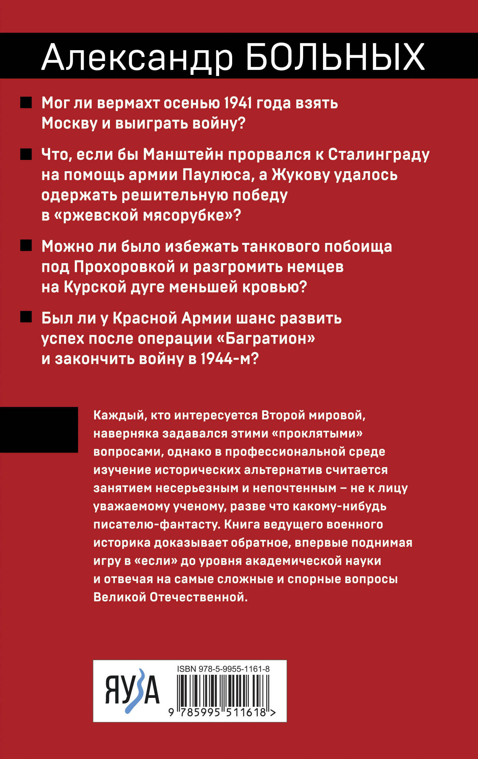 Мог ли Вермахт осенью 1941 года взять Москву и выиграть войну? Что, если бы Манштейн прорвался к Сталинграду на помощь армии Паулюса, а Жукову удалось одержать решительную победу в «Ржевской мясорубке»? Можно ли было избежать танкового побоища под Прохоровкой и разгромить немцев на Курской дуге меньшей кровью? Был ли у Красной Армии шанс развить успех после операции «Багратион» и закончить войну в 1944-м? Каждый, кто интересуется Второй мировой, наверняка задавался этими «проклятыми вопросами», однако в профессиональной среде изучение исторических альтернатив считается занятием несерьезным и непочтенным - не к лицу уважаемому ученому, разве что какому-нибудь писателю-фантасту. Книга ведущего военного историка доказывает обратное, впервые поднимая игру в «если» до уровня академической науки и отвечая на самые сложные и спорные вопросы Великой Отечественной.| Издательство | Яуза-пресс ООО |