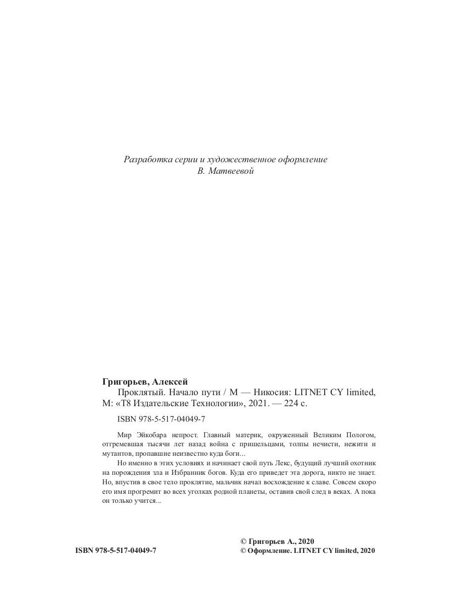 Мир Эйкобара непрост. Главный материк, окруженный Великим Пологом, отгремевшая тысячи лет назад война с пришельцами, толпы нечисти, нежити и мутантов, пропавшие неизвестно куда боги... Но именно в этих условиях и начинает свой путь Лекс, будущий лучший охотник на порождения зла и Избранник богов. Куда его приведет эта дорога, никто не знает. Но, впустив в свое тело проклятие, мальчик начал восхождение к славе. Совсем скоро его имя прогремит во всех уголках родной планеты, оставив свой след в веках. А пока он только учится...| Издательство | Т8 RUGRAM |