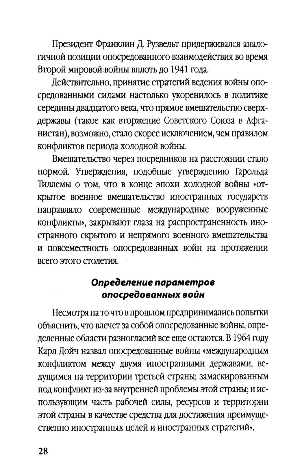 Эндрю Мамфорд - главный теоретик прокси-конфликтов в современном мире. Именно он ввёл термин «прокси» для описания современной политики США по борьбе со своими врагами в Третьем мире и сформулировал теорию опосредованной войны. Его работа раскрывает новый взгляд на саму структуру такого противостояния. Мамфорд показывает, что опосредованные войны имеют сложную структуру и развиваются по особым законам. Прокси-война ведётся без прямого участия, через сложную систему агентов влияния. Это «невидимая война», где сражаются «невидимые армии». Также в книгу включена работа Чалмерса Джонса, раскрывающая роль прокси-конфликтов в общей структуре американской политики доминирования.| Издательство | Родина |
