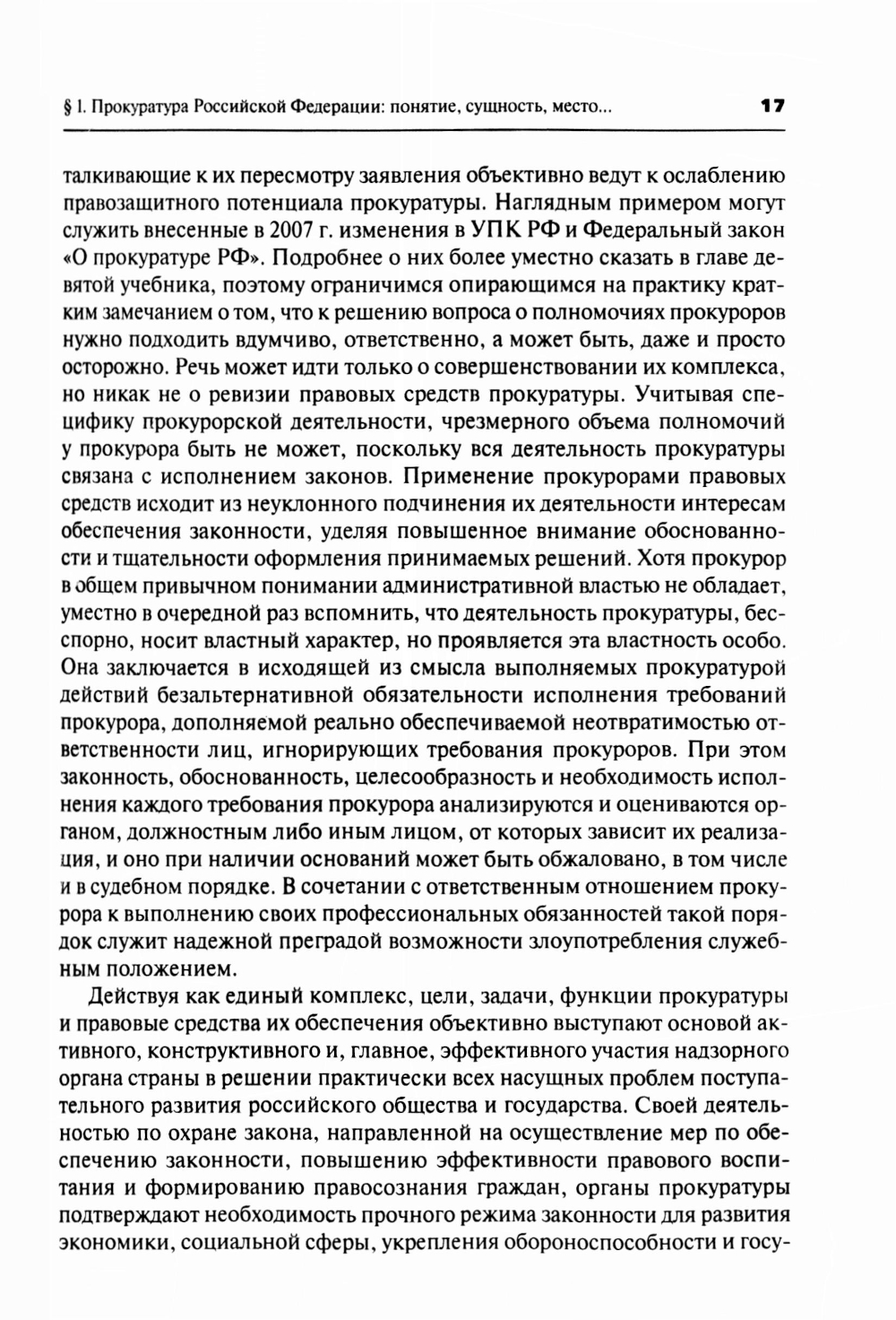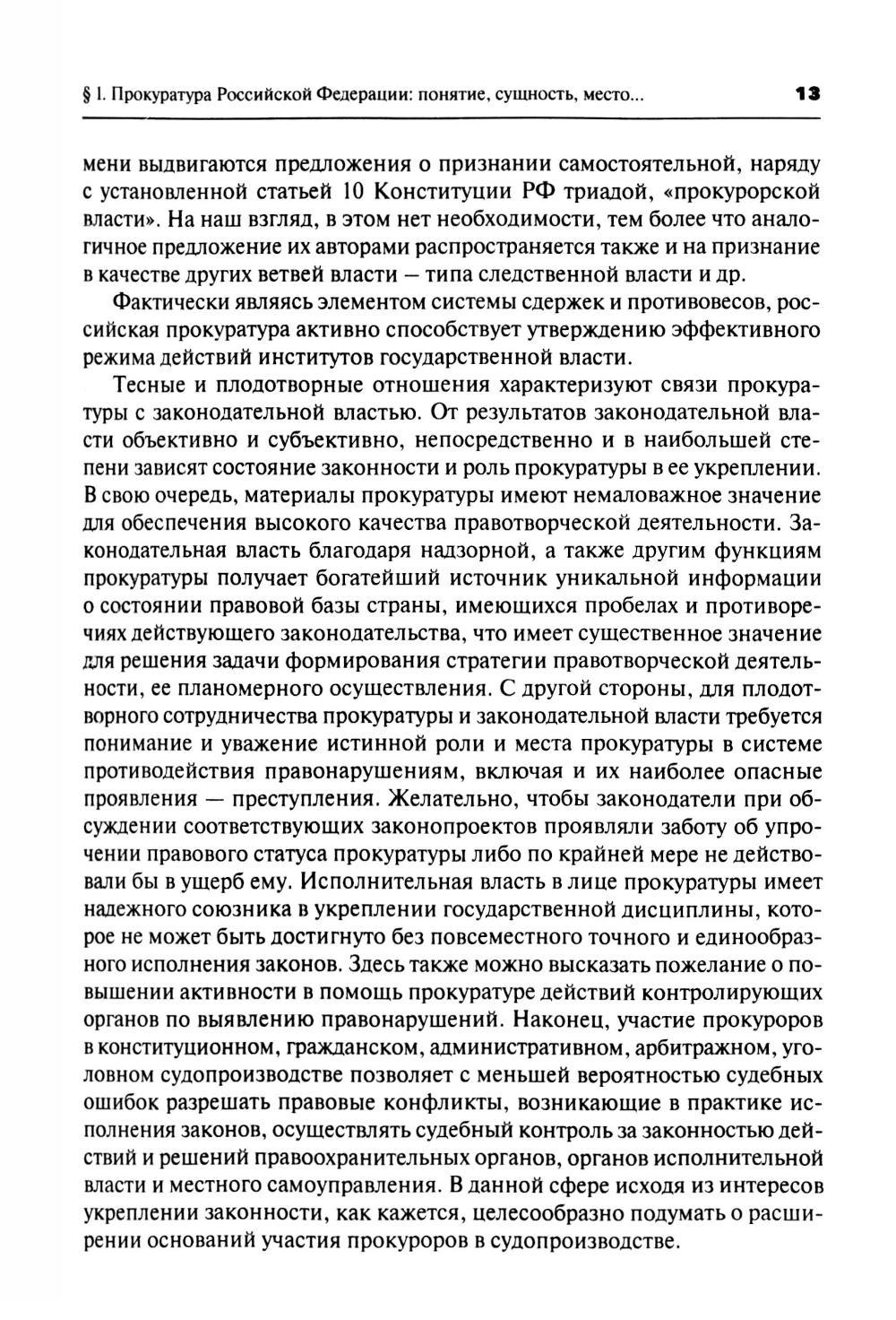 В учебнике освещается полный цикл вопросов, характеризующих деятельность прокуратуры Российской Федерации. Рассматриваются сущность, задачи и предмет прокурорского надзора, правовые основы, функции и ключевые направления деятельности прокуратуры Российской Федерации. Дается характеристика системы и структуры органов прокуратуры России, принципов ее организации и деятельности, функций прокуратуры, особенностей службы в органах прокуратуры Российской Федерации. Учебник подготовлен на основе современного законодательства, материалов практики прокурорского надзора, выполнения иных установленным законом функций прокуратуры, анализа методических разработок, использования комплекса действующих организационно-распорядительных документов Генеральной прокуратуры Российской Федерации. Соответствует актуальным требованиям федерального государственного образовательного стандарта. Для студентов бакалавриата, аспирантов, преподавателей юридических вузов и факультетов, для сотрудников правоохранительных органов, а также для всех тех, для кого знания о прокуратуре представляют профессиональный интерес.| Издательство | Зерцало |