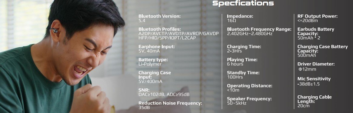 Легкий открытый дизайн снижает нагрузку на уши, а сенсорное управление позволяет легко управлять музыкой и звонками. Суммарное время воспроизведения с учетом зарядного кейса достигает 28 часов, что обеспечивает длительное использование без необходимости частой подзарядки.