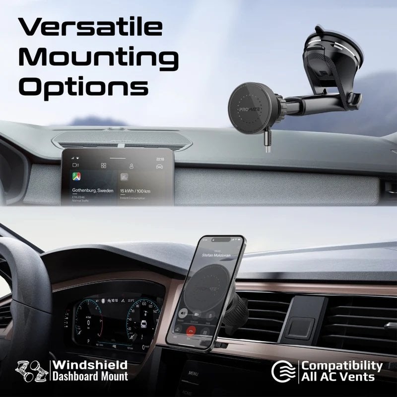 • Универсальные варианты крепления: легко прикрепите MagDrive-R к вентиляционному отверстию кондиционера, приборной панели или лобовому стеклу, адаптируясь к вашим предпочтениям.
