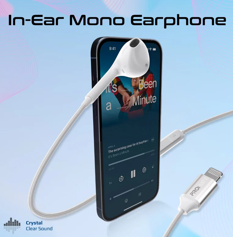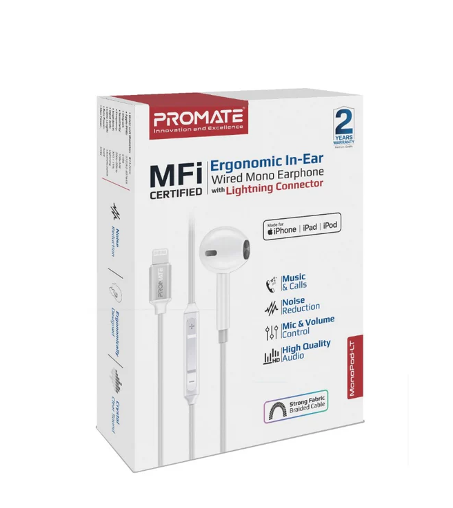 Promate MonoPod Ergonomic Mono MFI Certified In-Ear Проводные наушники Lightning / 1.3m