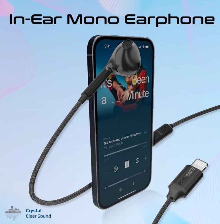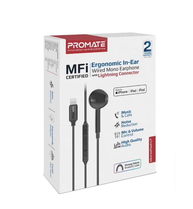 Promate MonoPod Ergonomic Mono MFI Certified In-Ear Проводные наушники Lightning / 1.3m