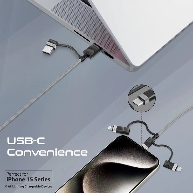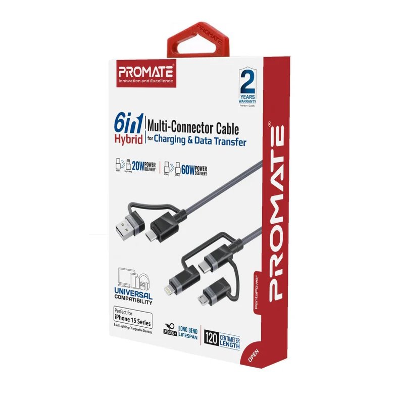 Promate PentaPower Универсальный кабель 6-в-1 USB-C(A) / micro / Lightning / 1,2m