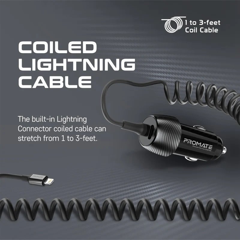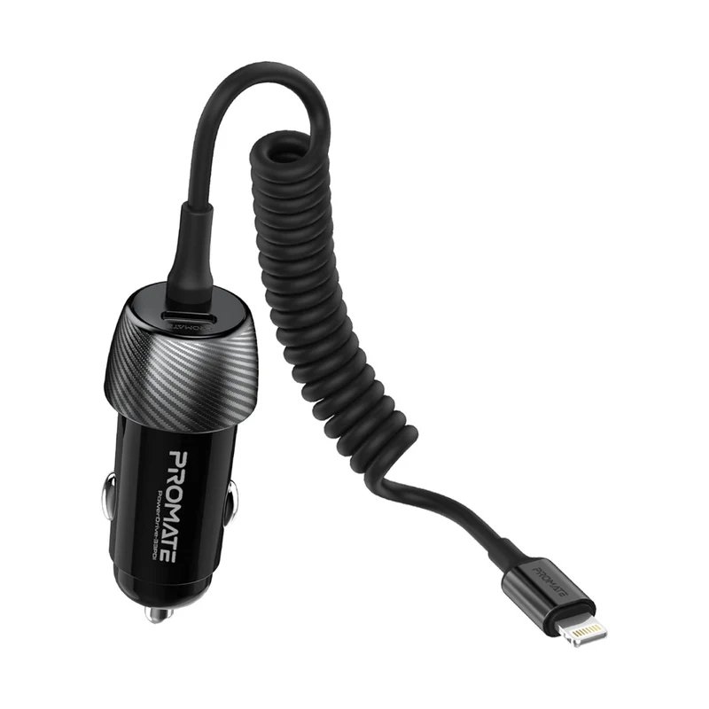 Promate PowerDrive-33PDI - идеальное решение для быстрой и эффективной зарядки твоих устройств в машине. А встроенный спиральный кабель отлично справится с техникой Apple, оптимизирует пространство в авто и избавит от необходимости покупки дополнительного провода.