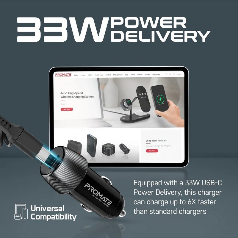Promate PowerDrive-33PDI Автомобильное зарядное устройство 33W / Lightning + USB-C