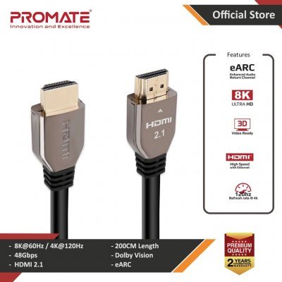 Promate ProLink8K-200 - максимально оснащённый HDMI кабель, который удовлетворит технические требования самых продвинутых мониторов, телевизоров, домашних кинотеатров и медиаплееров.