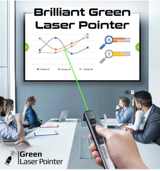 Улучшите качество ваших презентаций с помощью ярко-зеленой лазерной указки, дальность действия которой достигает 200 метров, обеспечивая видимость в любой обстановке.