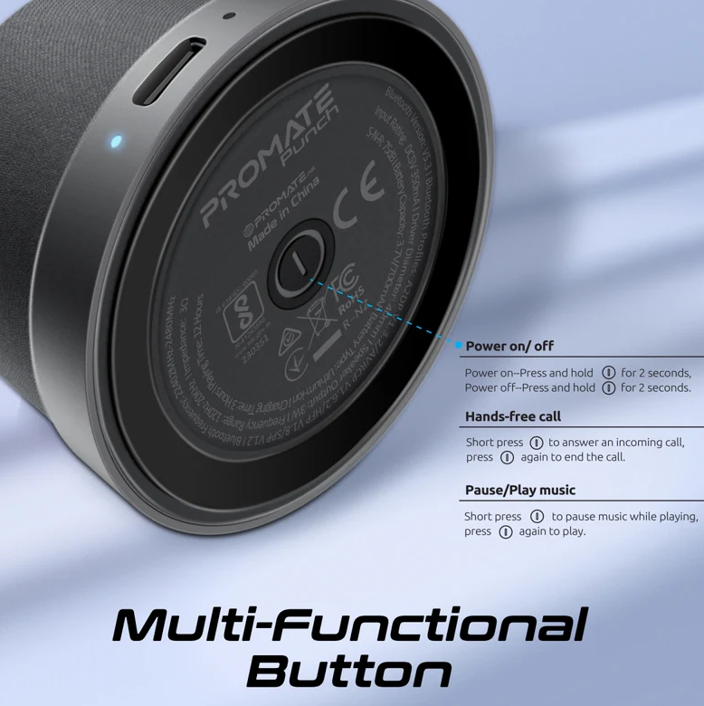 Ощутите акустическое блаженство с Punch - беспроводной колонкой мощностью 3 Вт с динамическими драйверами 40 мм, которая позволяет вам чувствовать каждый такт музыки, когда вы ее слушаете