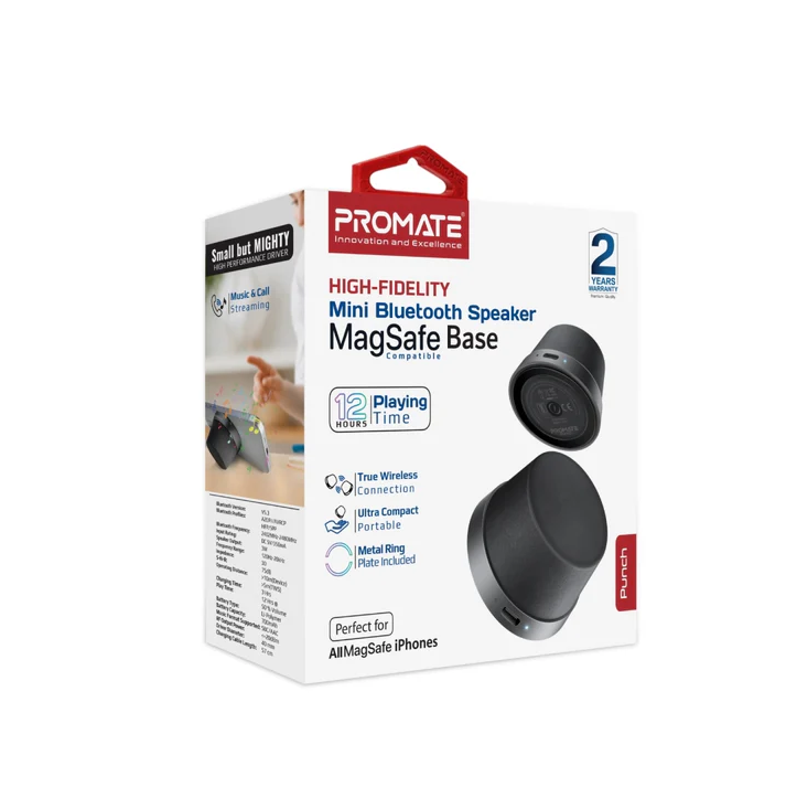 Ощутите безупречное качество звука с Punch, оснащенным совместимой с MagSafe базой, которая легко крепится к вашему iPhone, обеспечивая уникальный и удобный опыт прослушивания