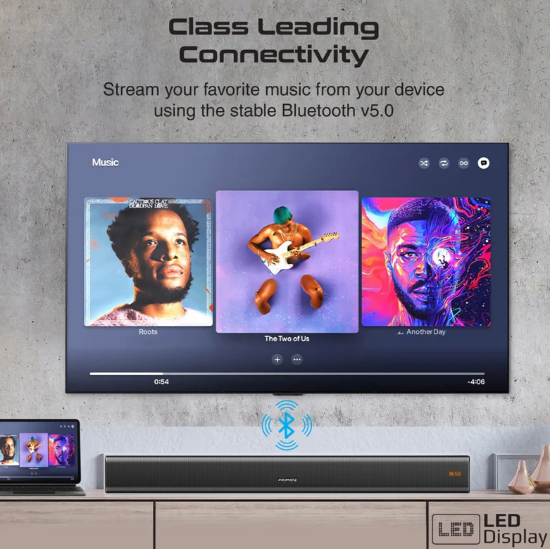Эта звуковая панель имеет стильный тонкий дизайн, который выглядит потрясающе, где бы вы ее ни разместили.