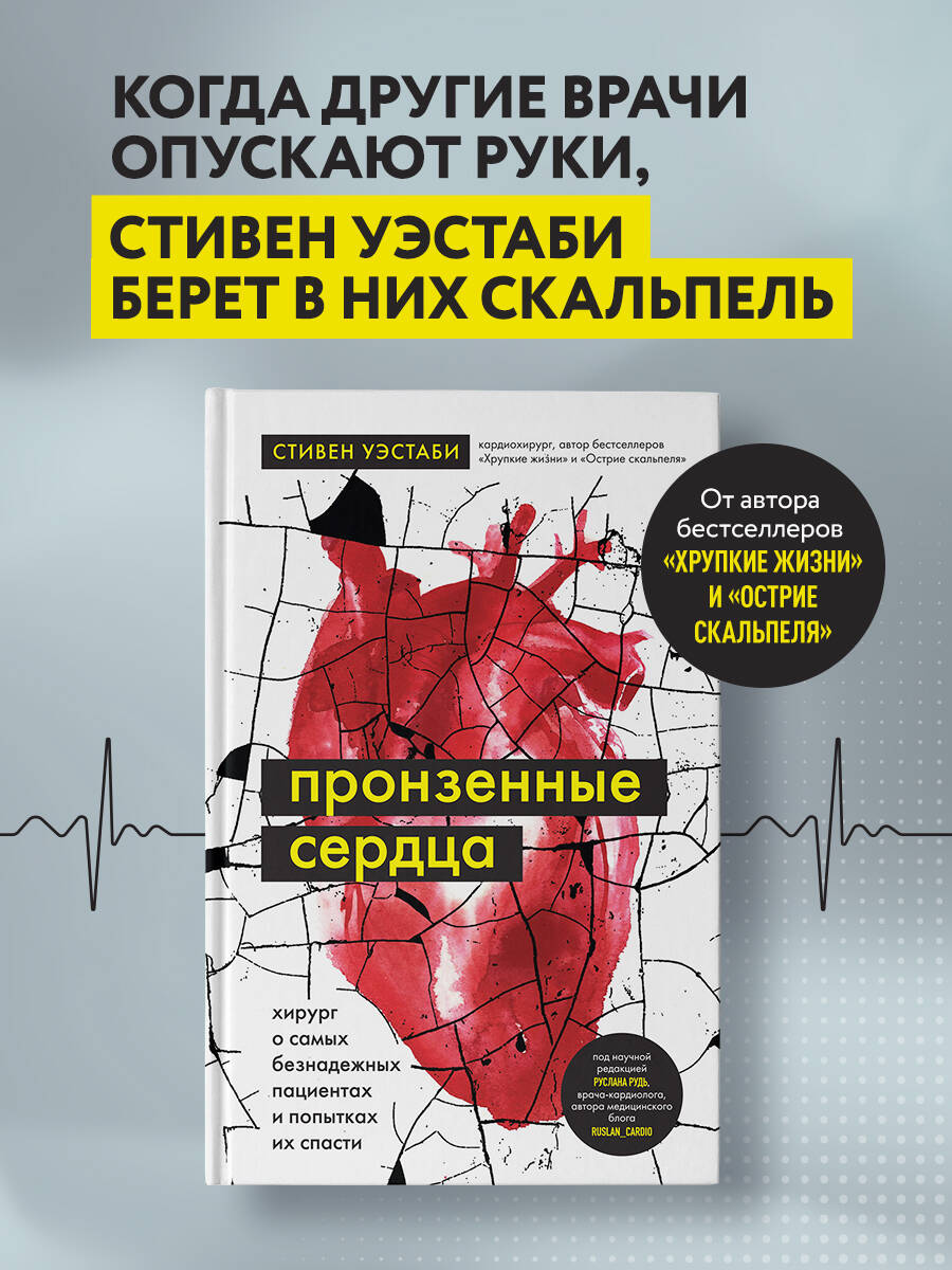 Как достать кусок арматуры из груди ребенка? Что делать, если пуля попала прямо в кровеносный сосуд и теперь направляется к сердцу? Как реанимировать беременную женщину с ножевыми ранениями, чтобы выжили и она, и ее ребенок? Когда другие врачи сомневаются или вовсе опускают руки, Уэстаби смело хватает скальпель! Стивен Уэстаби - известный кардиохирург, исследователь-новатор и смелый профессионал. Это он во время операции помочился через катетер в ботинок, чтобы не терять время. Это он взялся спасать жизнь умирающему мотоциклисту, когда у самого была сломана челюсть. Это его пациент прожил с искусственным сердцем дольше всех и попал в книгу рекордов. Уэстаби посвятил кардиохирургии всю жизнь - он всегда брался за самые безнадежные случаи и творил чудеса. В этой книге он открывает читателю дверь в операционную известной больницы Харефилд, передовой центр кардиохирургии в Бирмингеме (штат Алабама), где вступает в настоящие схватки с самой смертью. Автор описывает сложнейшие случаи из практики кардиохирурга, тяжелые судьбы пациентов и всеобщие проблемы системы здравоохранения, вскрывшиеся во время пандемии вируса Covid-19, о котором Стивен Уэстаби узнал в Ухане еще до того, как его идентифицировал весь мир. «Большинство первокурсников (и я когда-то) мечтают стать хирургами. Вечное безумие в операционной, жизнь человека на волоске, времени в обрез, полная самоотдача, огромная ответственность, провал, беседа с близкими. Не иначе как сценарий для нового популярного сериала. Однако, перед вами книга настоящего безумца и смельчака хирурга-травматолога, который рассказывает истории из своей практики. И каждый описанный им клинический случай, начиная от ДТП и заканчивая огнестрелами, поражает. Но на самом деле, это не история одного человека, это реальность любого хирурга. Низкий вам поклон, коллеги!» Руслан Рудь, врач-кардиолог, автор медицинского блога ruslan_cardio «Каждая история в этой увлекательной книге - это новое хирургическое приключение, от которого захватывает дух... Одаренный хирург, Уэстаби - прирожденный писатель. Эта книга - хроника кровавых подвигов, история современной кардиологии, дань уважения пациентам и хирургам». - The Daily Telegraph «Уэстаби - гений хирургии: авторитетный, заинтересованный, страстный и убежденный. Его книга, раздражающе хорошо написанная для человека, который писал только медицинские статьи и справочники, читается как триллер, только с большим количеством трупов. Вы спешите дочитать каждую главу до конца, чтобы узнать, выживет ли его пациент, который точно должен умереть». - The Times