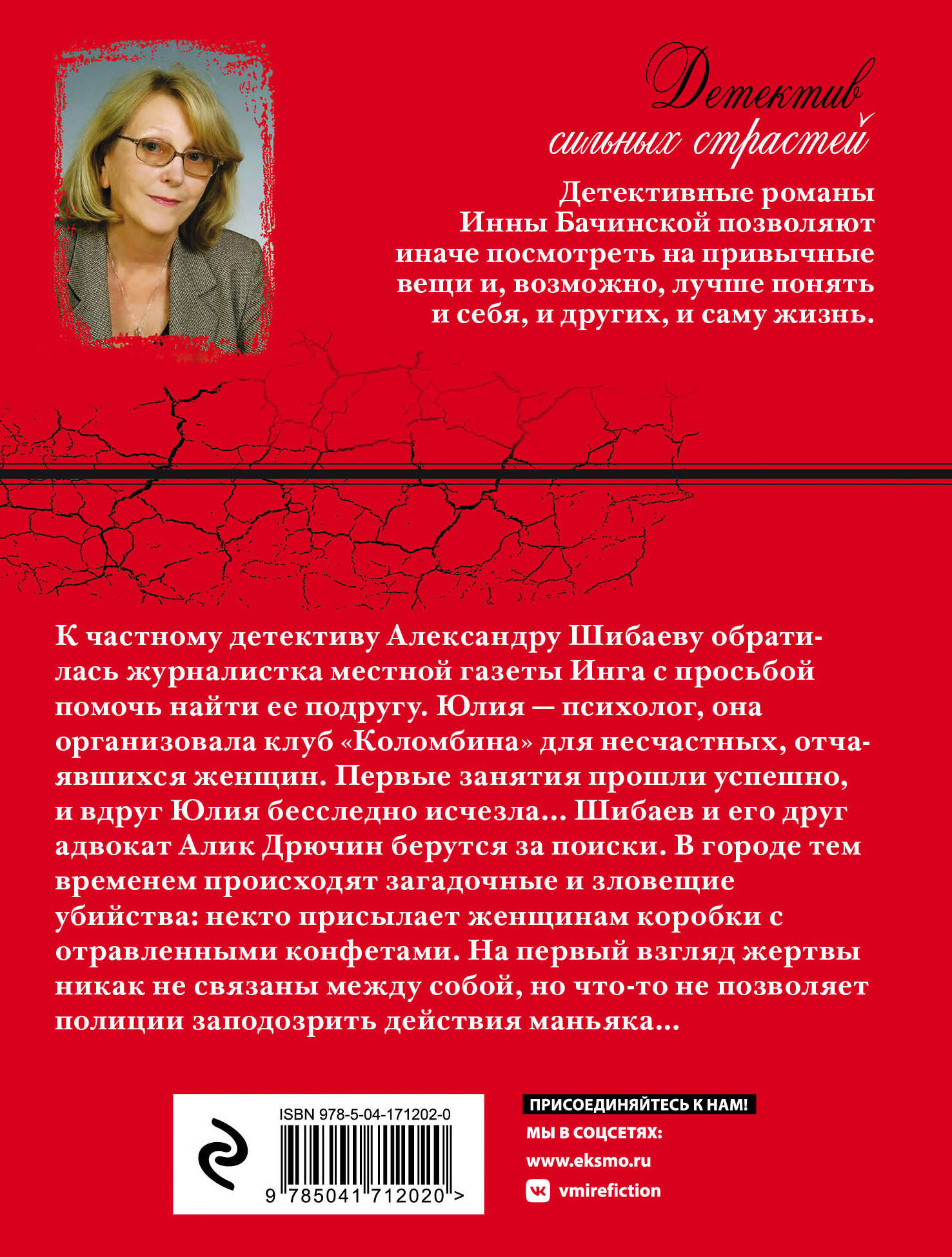 Новый детективный роман Инны Бачинской «Пропасть смотрит в тебя» входит в авторский цикл «Дикие лебеди», повествующий о приключениях отважного и решительного Александра Шибаева, бывшего оперативника. Когда-то он по нелепому стечению обстоятельств потерял работу в органах и с тех пор занимается частным сыском вместе со своим другом, интеллектуалом-адвокатом Аликом Дрючиным. К частному детективу Александру Шибаеву обратилась журналистка местной газеты Инга с просьбой помочь найти ее подругу. Юлия - психолог, она организовала клуб «Коломбина» для несчастных отчаявшихся женщин. Первые занятия прошли успешно, и вдруг Юлия бесследно исчезла... Шибаев и его друг, адвокат Алик Дрючин, берутся за поиски. В городе тем временем происходят загадочные и зловещие убийства: некто присылает женщинам коробки с отравленными конфетами. На первый взгляд жертвы никак не связаны между собой, но что-то не позволяет полиции заподозрить действия маньяка…