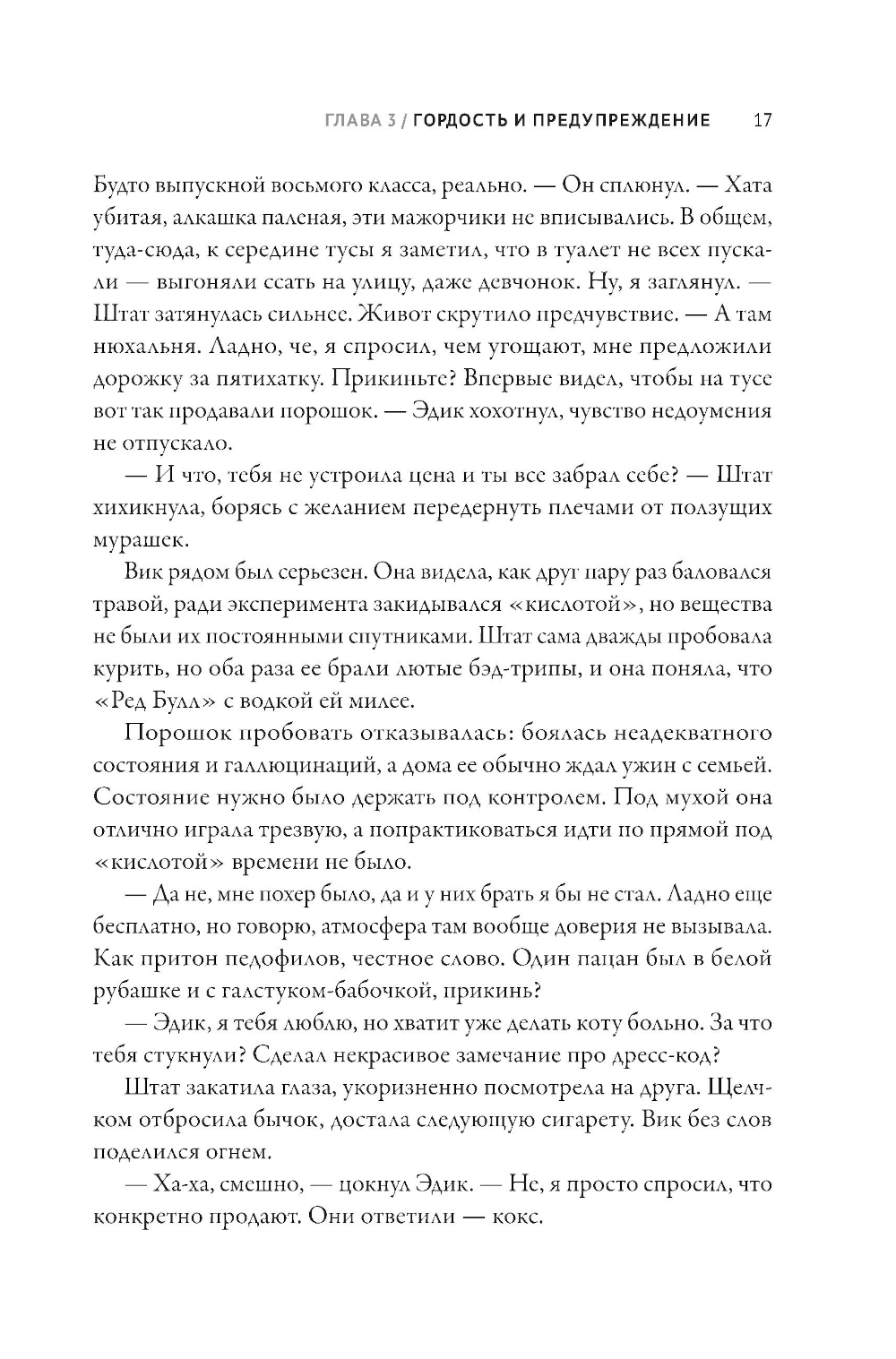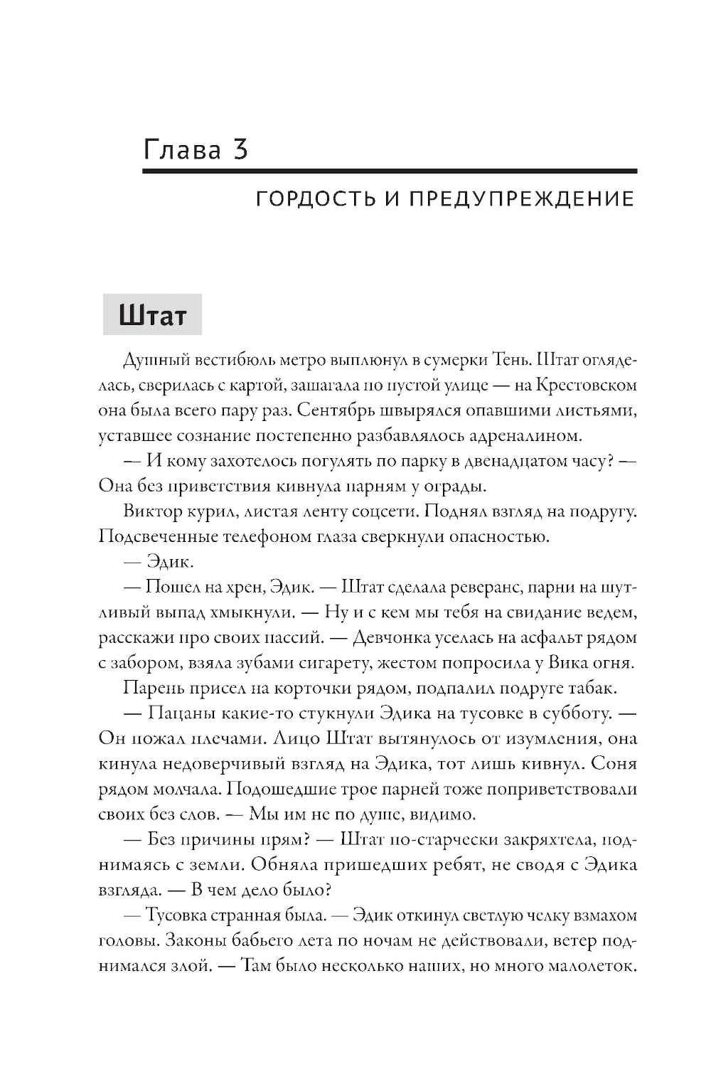 Разрушительная юность, после которой человек либо становится лучшей версией себя, либо катится по наклонной... Штат и Виктор - друзья. И предводители местной ОПГ. Они совершают погромы по заказу и бьются с местными бандами за власть. Их отношения - эталон искренней, но разрушающей обоих, токсичной дружбы. Первая любовь человека, у которого в карманах порошок и сбитые кулаки. Первое предательство и ошибки, ломающие жизнь. Как Штат и Виктор, маргиналы «поколения ХХI», связаны с прошлым Татум? История наших героев продолжается, и в нее вплетаются новые персонажи и новые судьбы.| Издательство | Феникс |