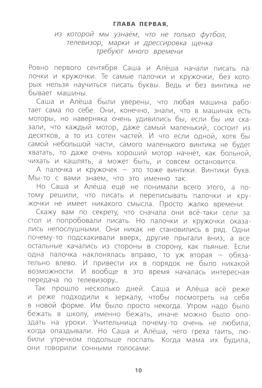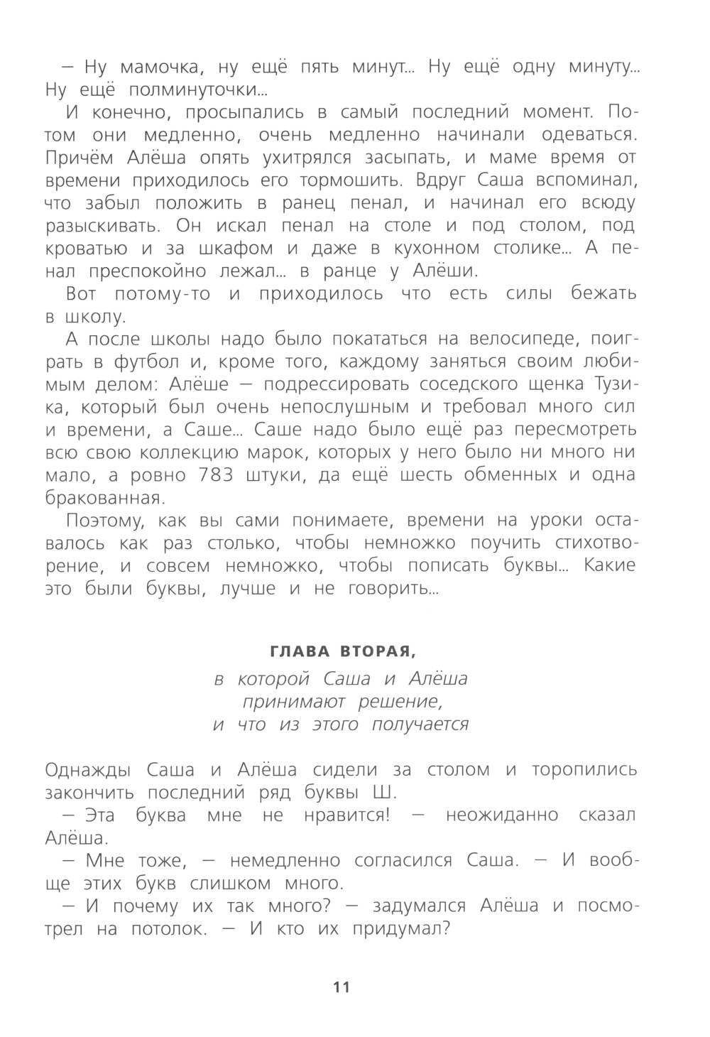 Саша и Алёша - родные братья, и не просто родные братья, а близнецы. Каждому из них ровно по семь лет, восемь месяцев и девять дней, и они очень похожи друг на друга. Всё лето, надев школьную форму, близнецы любовались своим отражением в зеркале и думали о том, что скоро, очень скоро у них начнётся новая жизнь. Но они совсем не догадывались, какие приключения их ожидают. Всё началось сразу после первого сентября, когда Саша и Алёша в первый раз пошли в школу. Теперь им приходилось подниматься рано по утрам, собирать портфели и делать уроки. И если с первыми двумя задачами они ещё как-то справлялись, то домашние задания были самой настоящей бедой. Конечно, попробуй тут усиди, когда эти настырные палочки-крючочки никак не хотят складываться в буквы! Лучше бы этих букв совсем не было! Но, как известно, желания имеют обыкновение сбываться... И Саша и Алёша вдруг оказываются в волшебном Буквограде, где с новыми друзьями братья отправляются на поиски пропавшей буквы, в то время как злейшие враги города - буквоеды -угрожают проглотить весь алфавит.| Издательство | ИД КомпасГид |
