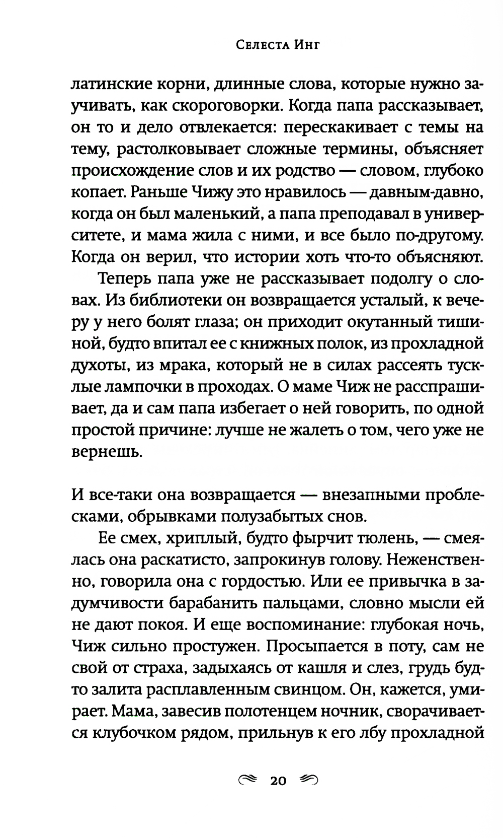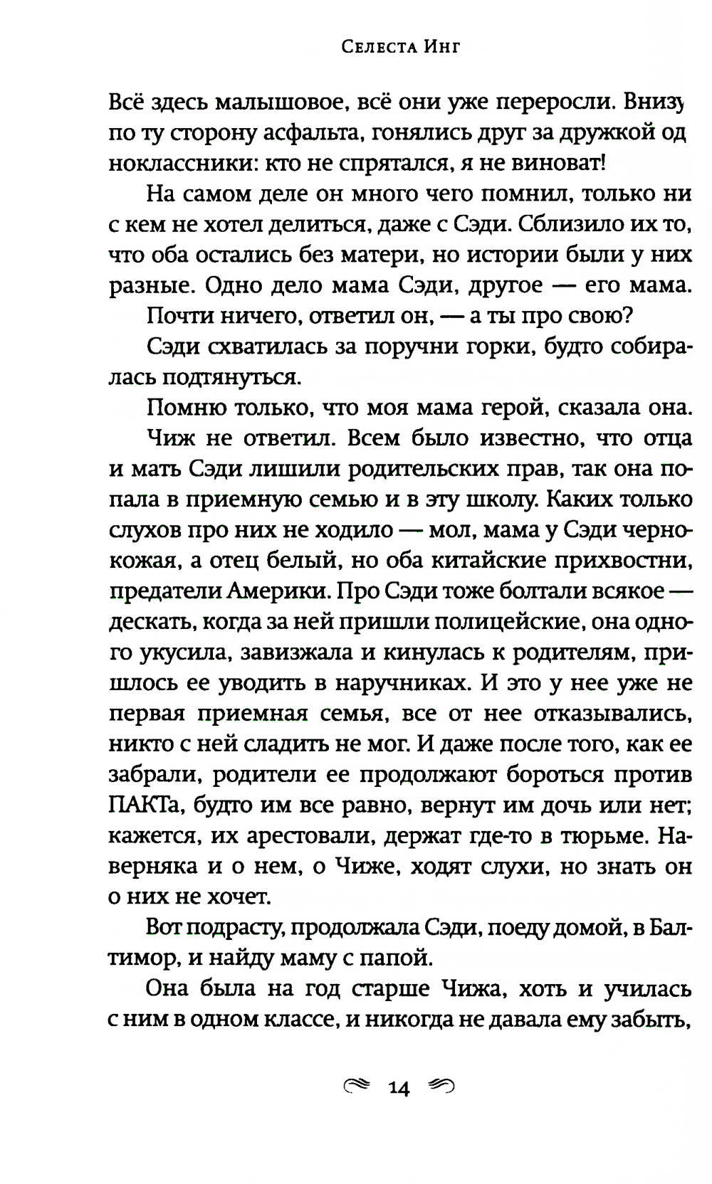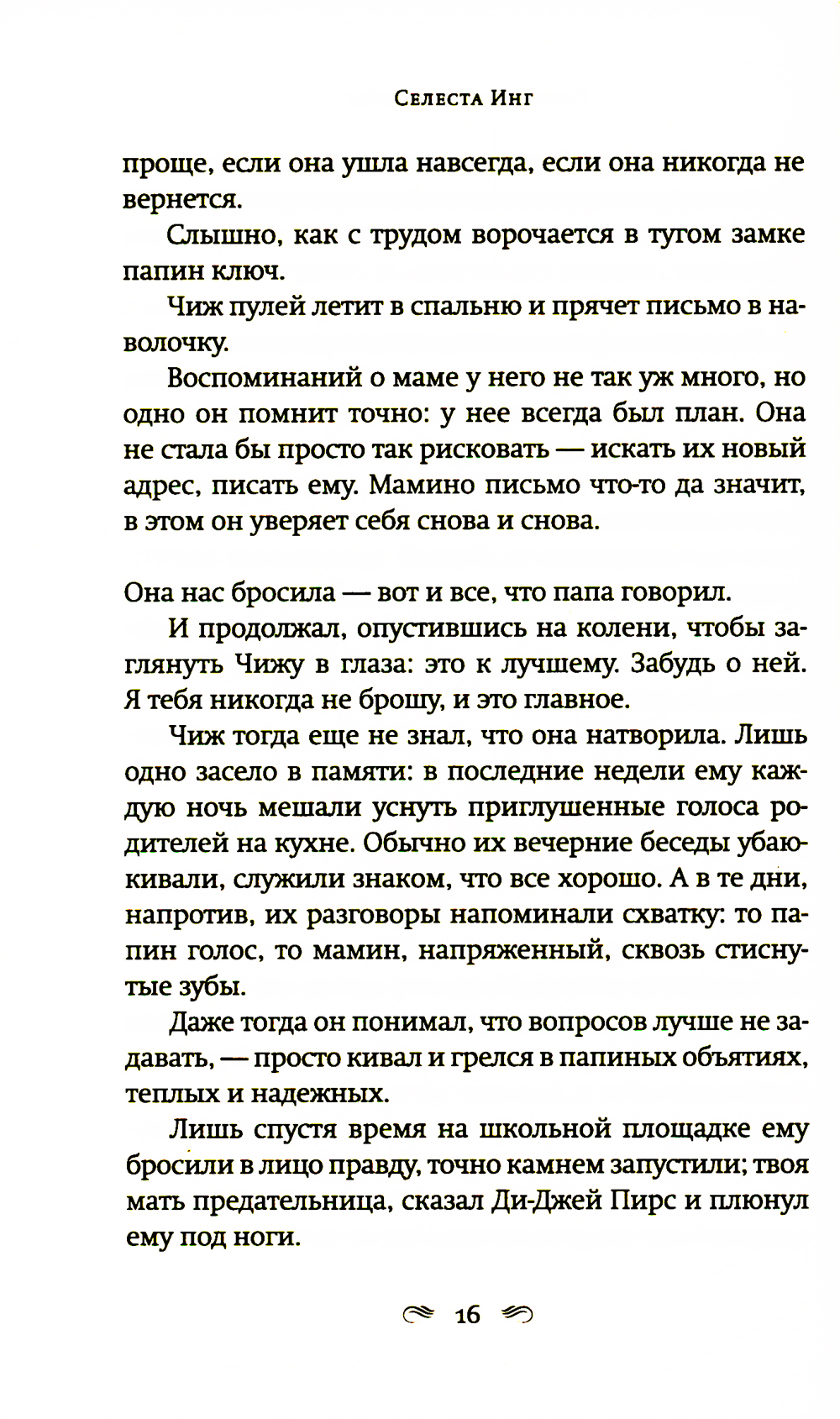 Автор двух мировых бестселлеров «Все, чего я не сказала» и «И повсюду тлеют пожары», не изменяя своему психологическому стилю, ступает на новую для себя жанровую территорию. Роман о материнской любви в мире, который порабощен страхом. Двенадцатилетний Чиж ведет тихую жизнь с любящим, но сломленным отцом, бывшим лингвистом, который теперь работает библиотекарем. Чиж знает, что нельзя задавать вопросы, нельзя выделяться, нельзя уходить далеко от дома. Последние годы их жизнь подчинена законам, призванным сохранить традиционные ценности. Новые законы позволяют властям забирать у оппозиционно настроенных родителей детей, из библиотек и книжных магазинов изымаются книги, считающиеся непатриотичными. Среди них и книжка стихов матери Чижа. Мать исчезла, когда Чижу было девять лет. Однажды Чиж получает загадочное письмо, в котором только странные рисунки, и отправляется на поиски матери. Его путешествие станет возвращением к сказкам и историям, которые мать когда-то успела ему прочитать и которые он забыл. Новый роман Селесты Инг - история о том, что можно выжить даже в переломанном и искореженном мире, если сердце твое уцелело.| Издательство | Фантом Пресс |