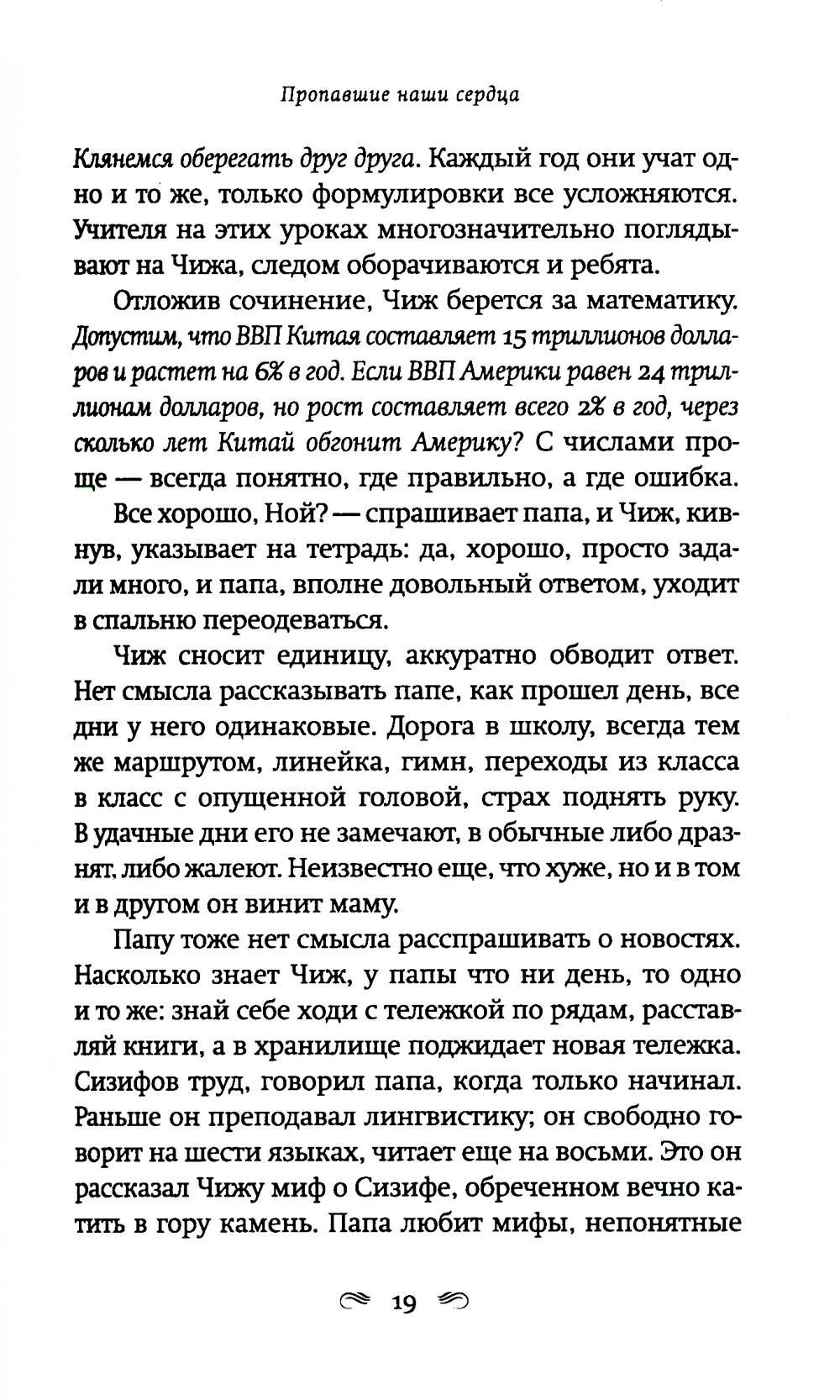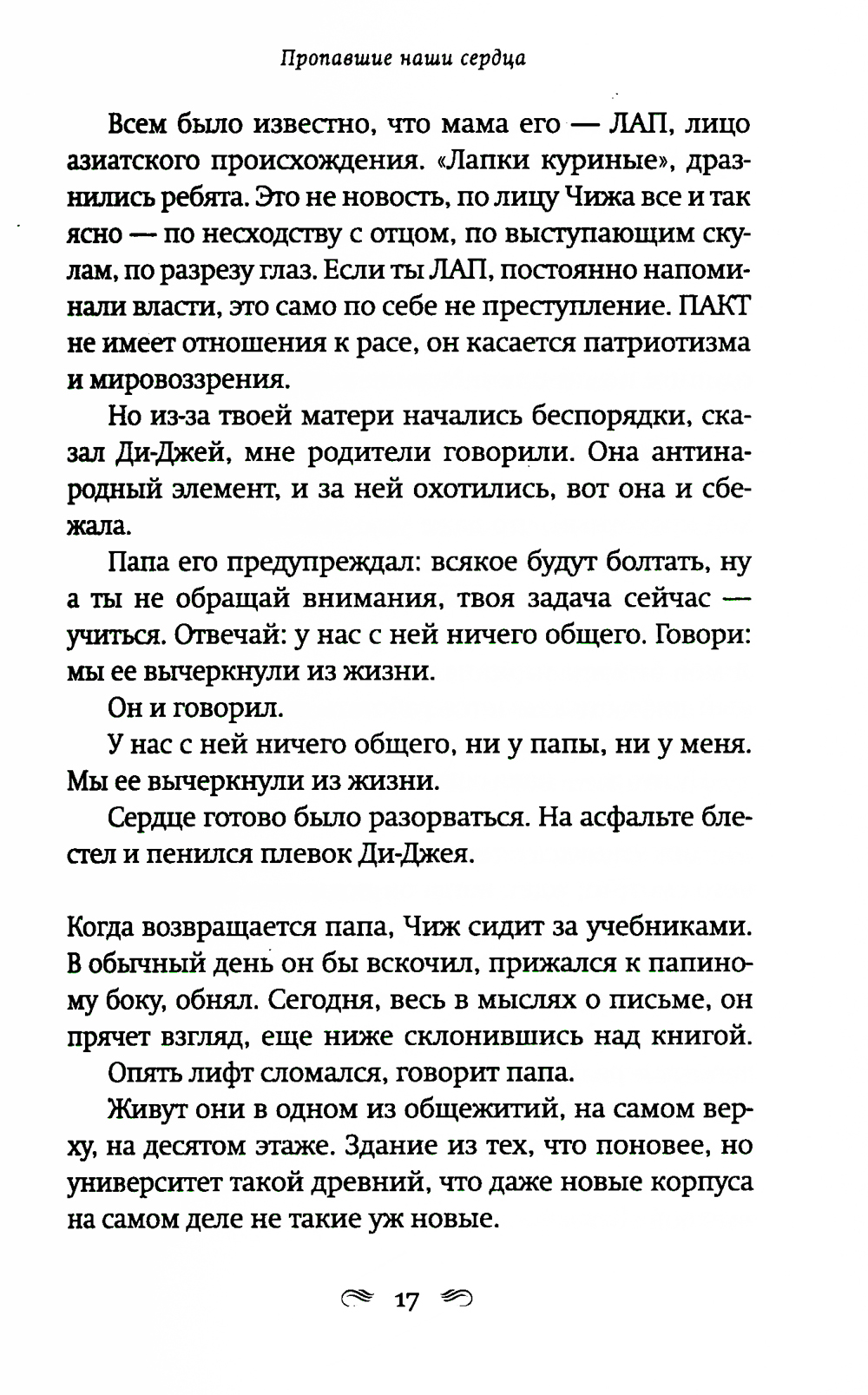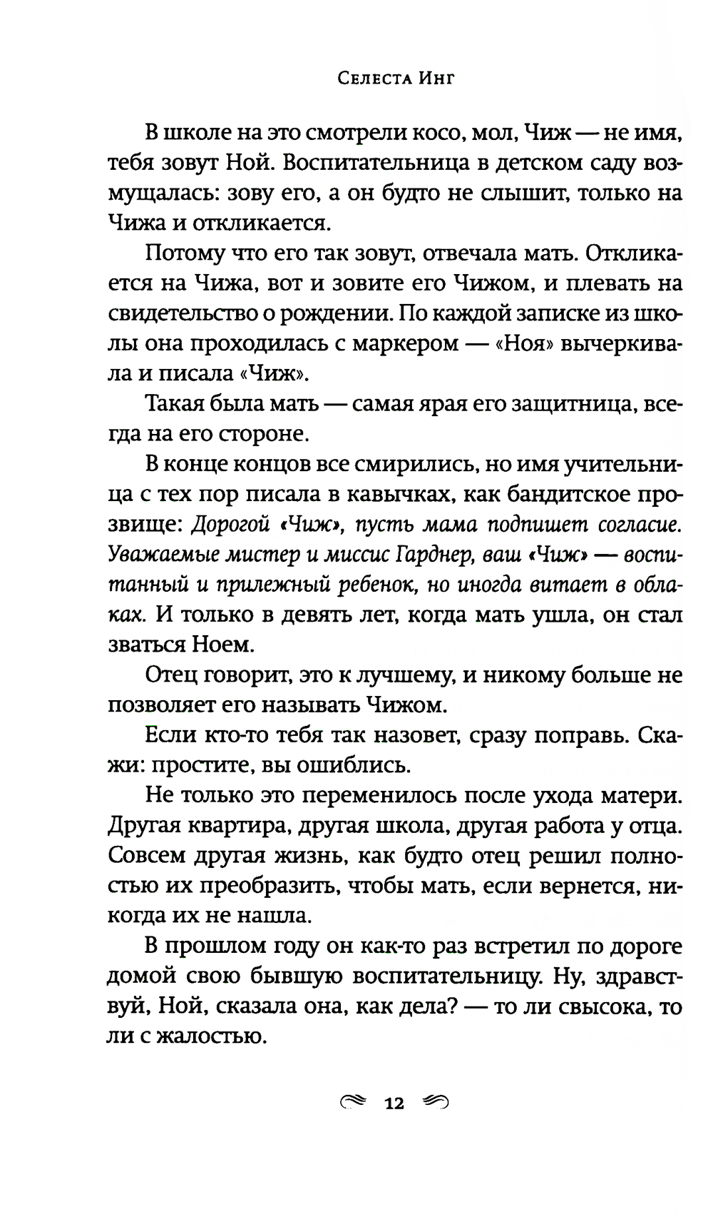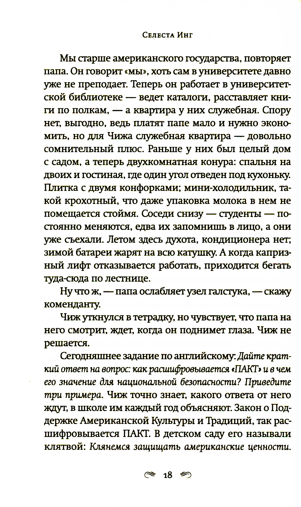 Автор двух мировых бестселлеров «Все, чего я не сказала» и «И повсюду тлеют пожары», не изменяя своему психологическому стилю, ступает на новую для себя жанровую территорию. Роман о материнской любви в мире, который порабощен страхом. Двенадцатилетний Чиж ведет тихую жизнь с любящим, но сломленным отцом, бывшим лингвистом, который теперь работает библиотекарем. Чиж знает, что нельзя задавать вопросы, нельзя выделяться, нельзя уходить далеко от дома. Последние годы их жизнь подчинена законам, призванным сохранить традиционные ценности. Новые законы позволяют властям забирать у оппозиционно настроенных родителей детей, из библиотек и книжных магазинов изымаются книги, считающиеся непатриотичными. Среди них и книжка стихов матери Чижа. Мать исчезла, когда Чижу было девять лет. Однажды Чиж получает загадочное письмо, в котором только странные рисунки, и отправляется на поиски матери. Его путешествие станет возвращением к сказкам и историям, которые мать когда-то успела ему прочитать и которые он забыл. Новый роман Селесты Инг - история о том, что можно выжить даже в переломанном и искореженном мире, если сердце твое уцелело.| Издательство | Фантом Пресс |