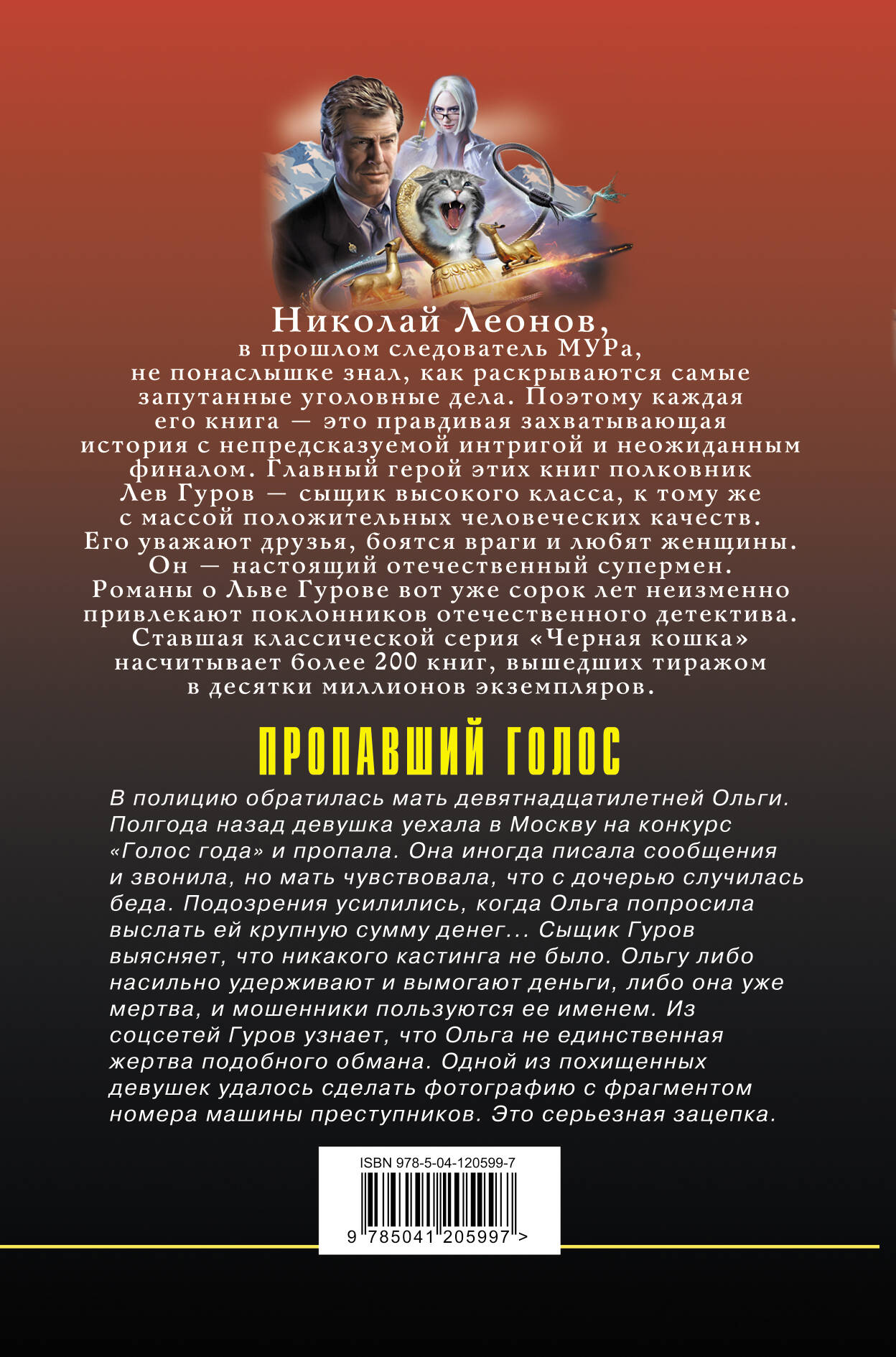 Николай Леонов, в прошлом следователь МУРа, не понаслышке знал, как раскрываются самые запутанные уголовные дела. Поэтому каждая его книга - это правдивая захватывающая история с непредсказуемой интригой и неожиданным финалом. Главный герой этих книг, полковник Лев Гуров - сыщик высокого класса, к тому же с массой положительных человеческих качеств. Его уважают друзья, боятся враги и любят женщины. Он - настоящий отечественный супермен. Романы о Льве Гурове вот уже сорок лет неизменно привлекают поклонников отечественного детектива. Ставшая классической серия «Черная кошка» насчитывает более 200 книг, вышедших тиражом в десятки миллионов экземпляров. В полицию обратилась мать девятнадцатилетней Ольги. Полгода назад девушка уехала в Москву на конкурс «Голос года» и пропала. Она иногда писала сообщения и звонила, но мать чувствовала, что с дочерью случилась беда. Подозрения усилились, когда Ольга попросила выслать ей крупную сумму денег... Сыщик Гуров выясняет, что никакого кастинга не было. Ольгу либо насильно удерживают и вымогают деньги, либо она уже мертва, и мошенники пользуются ее именем. Из соцсетей Гуров узнает, что Ольга - не единственная жертва подобного обмана. Одной из похищенных девушек удалось сделать фотографию с фрагментом номера машины преступников. Это серьезная зацепка, но к чему она приведет - не догадывается даже Гуров…| Издательство | ООО "Издательство "Эксмо" |
