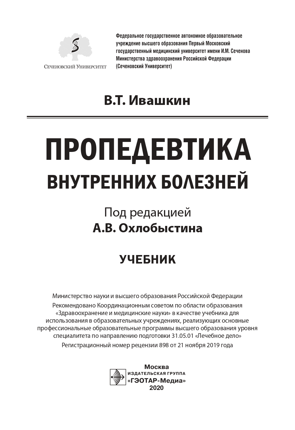 Аннотация: Пропедевтика внутренних болезней. Учебник для ВУЗов